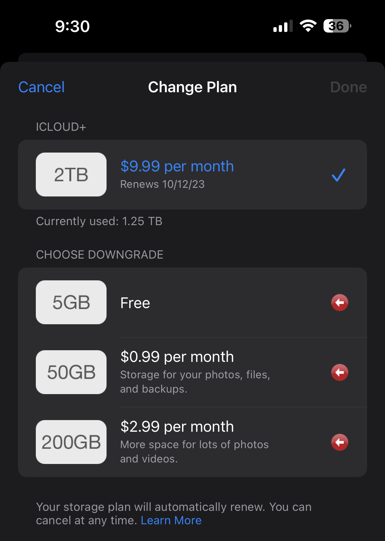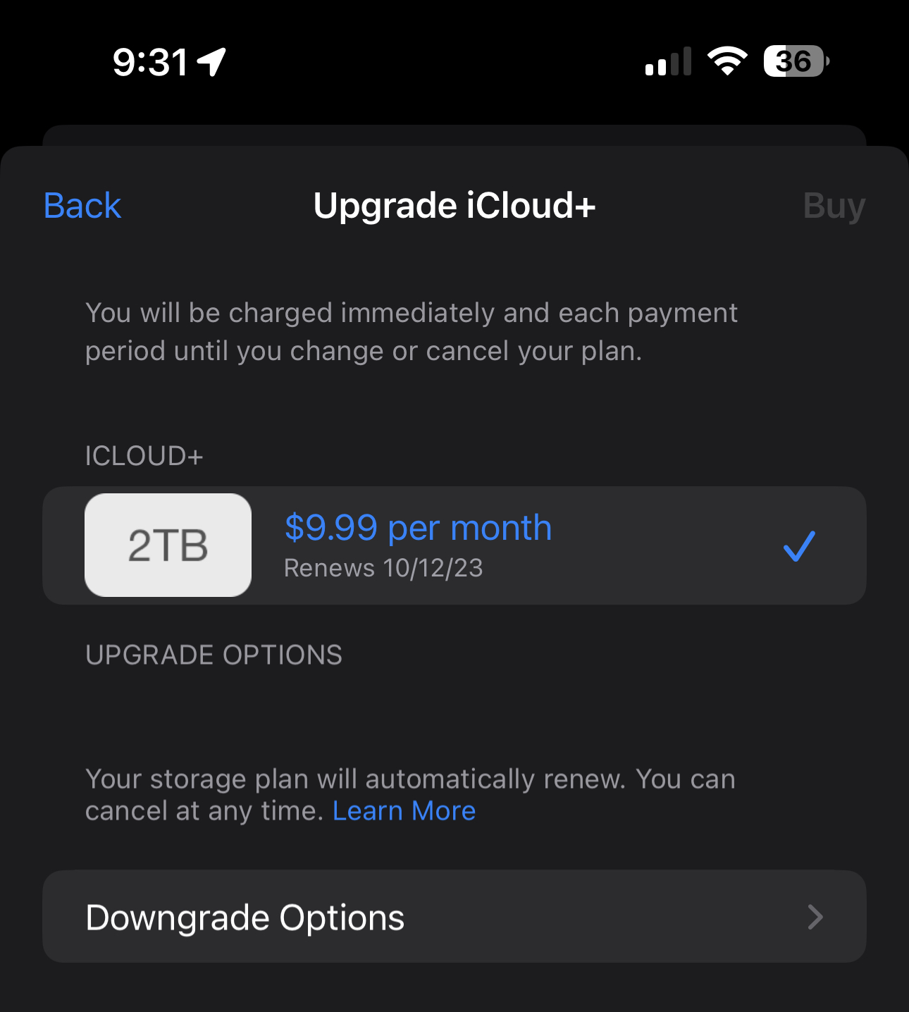 Is that active now? How do I upgrade to 12TB iCloud? How come I don't have that option to buy more?