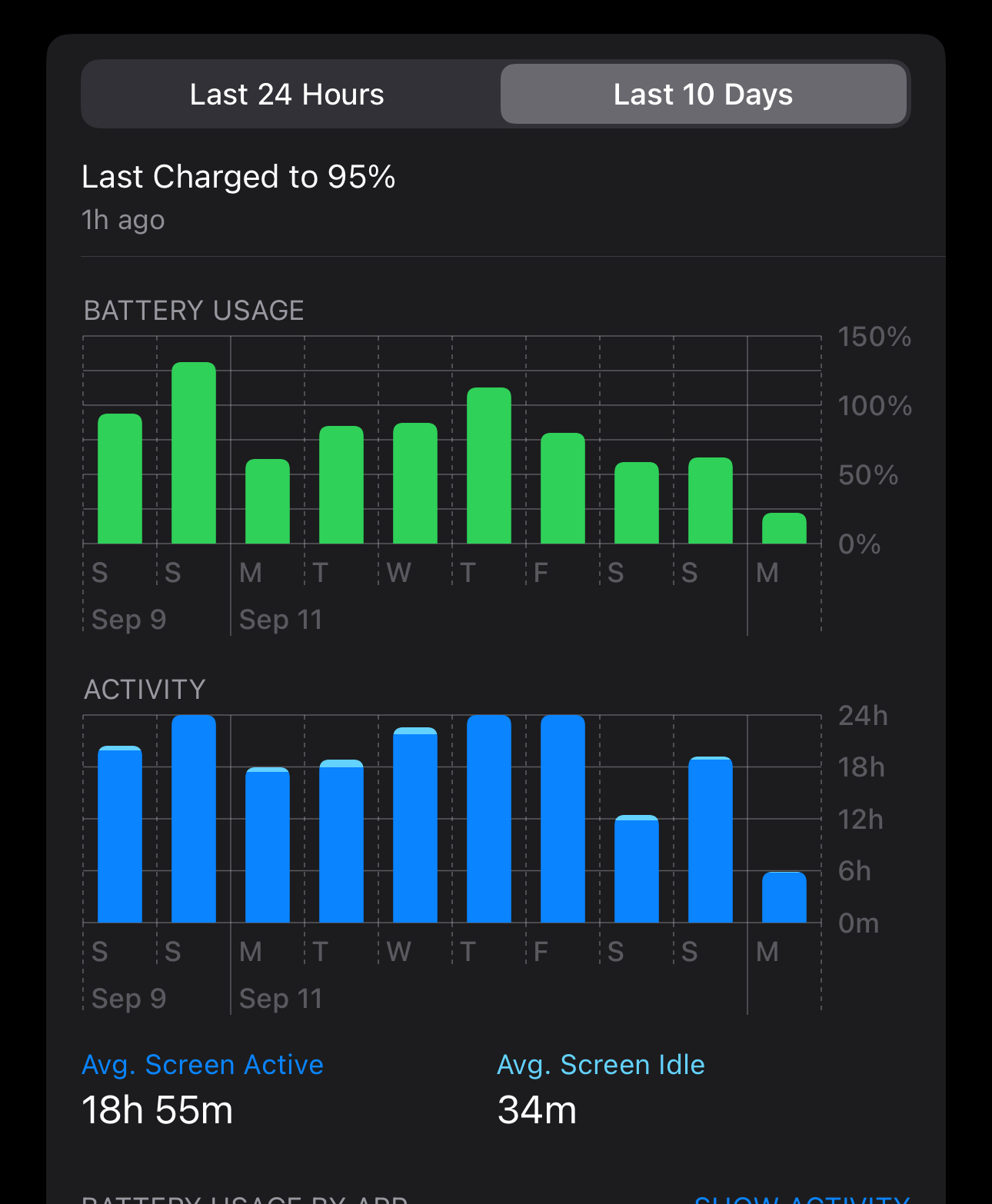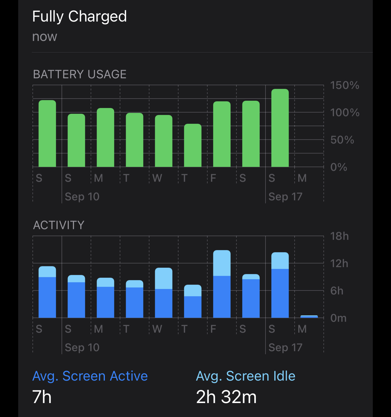 This is as of right now 😁I'm a super heavy user too. What's your battery usage looking like? Notice how my iPhone 14 Pro Max usage skyrocketed starting Friday. ✨