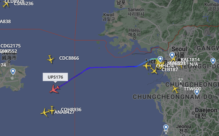 UPS175 | N611UP | CGO-ICN | Estimated | Departure: 4:00AM CST | Arrival: 6:45AM KST