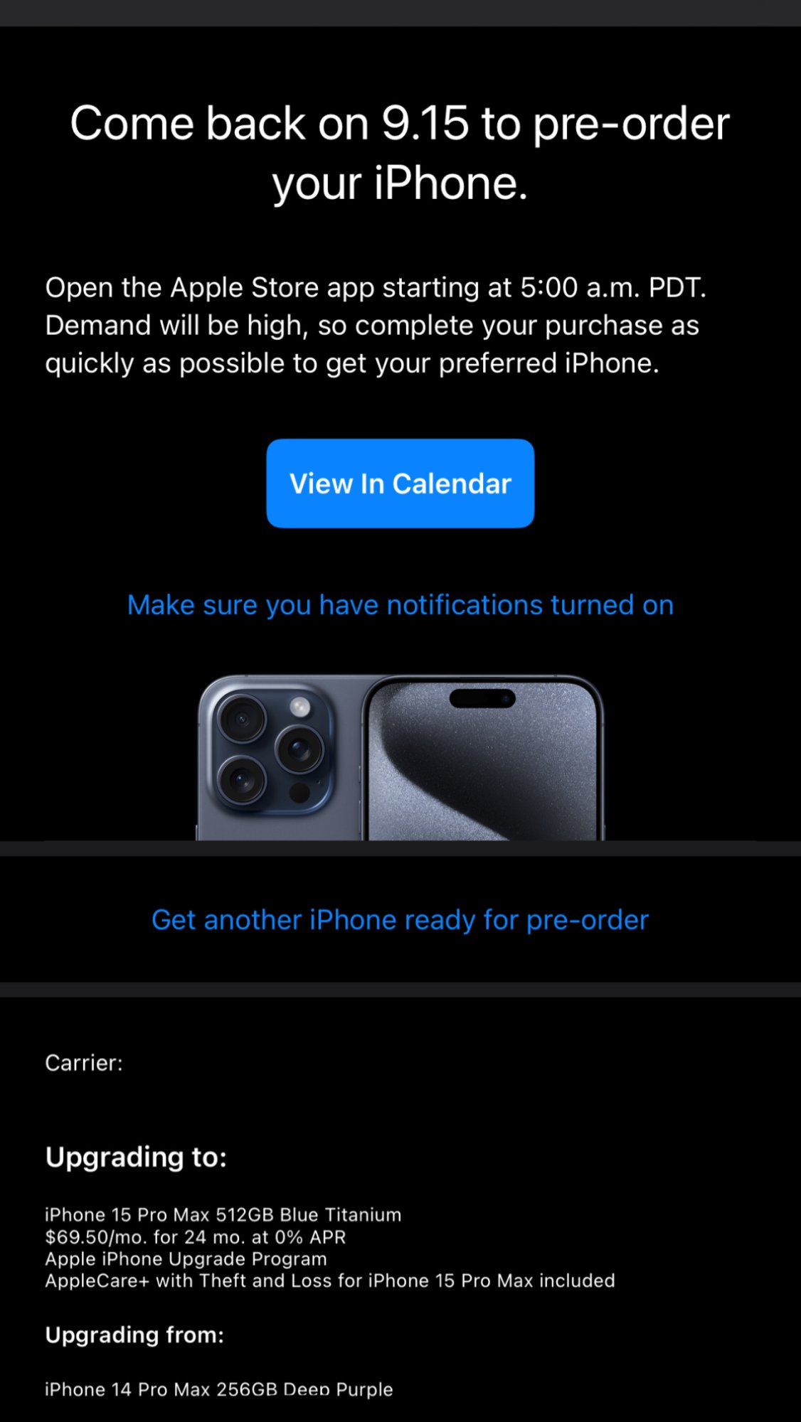 I knew you would preorder this year!Had a last minute change of heart. just signed up for iUP and saved a blue titanium for preorder!