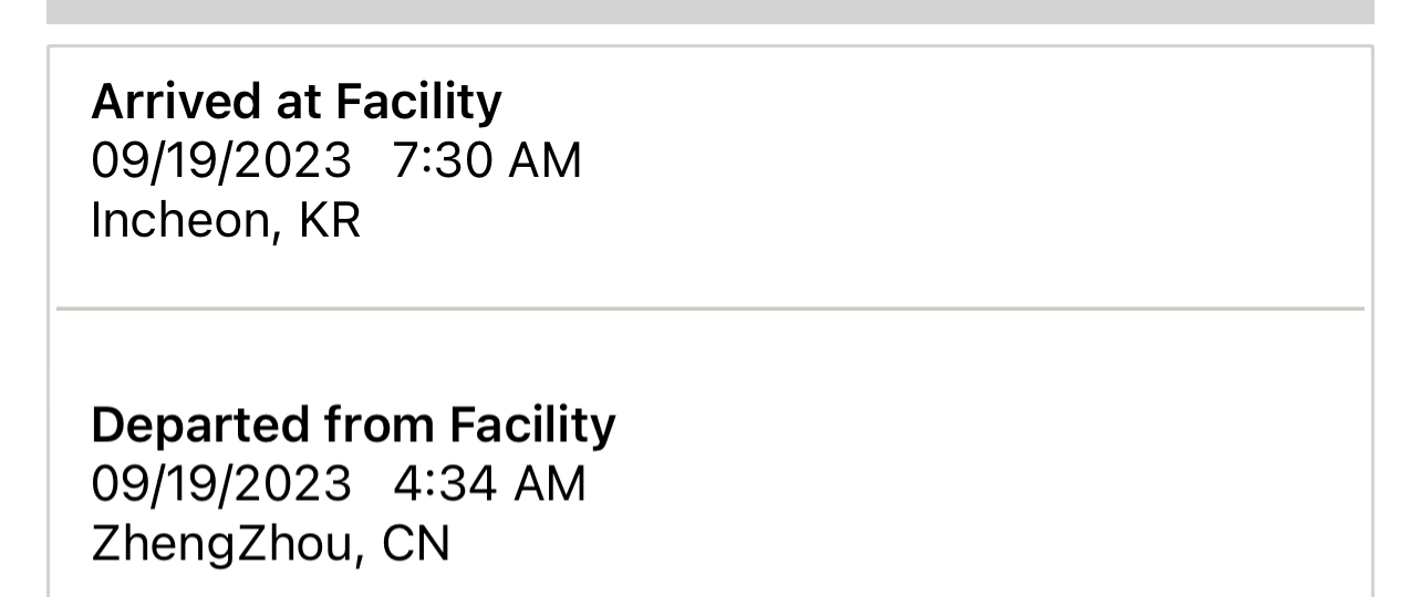 It’s a pre-authorization approval alerting USA customs that the pallets are being exported. It’s an international shipment. They have to notify the customs in USA what’s coming over (exporting goods). Hence, it goes through a security cleareance. International travel laws!Curious, why does it show a Clearance in Progress scan for Louisville yesterday 6:53 PM when it hadn't even gotten to Incheon yet?