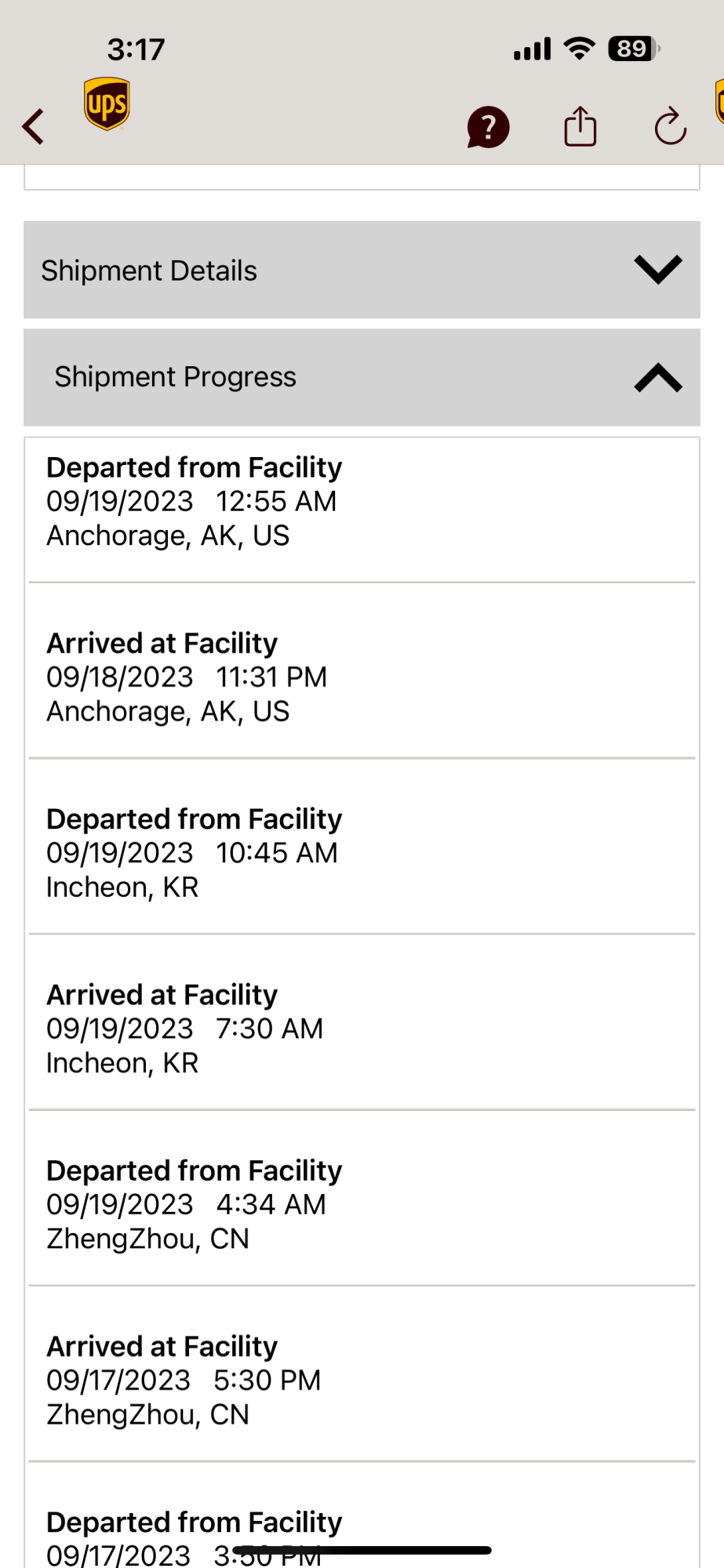 Your package is in Incheon ir might departed check actual UPS app.Still sitting in ZZ, showing shipment exception for a weather delay in Incheon....View attachment 2269484