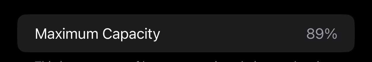 Wow! My iPhone 14 Pro Max is sitting at 89% 😭My 13 Pro is currently sitting at 89%. I'd say 86% is still good after 2 years.