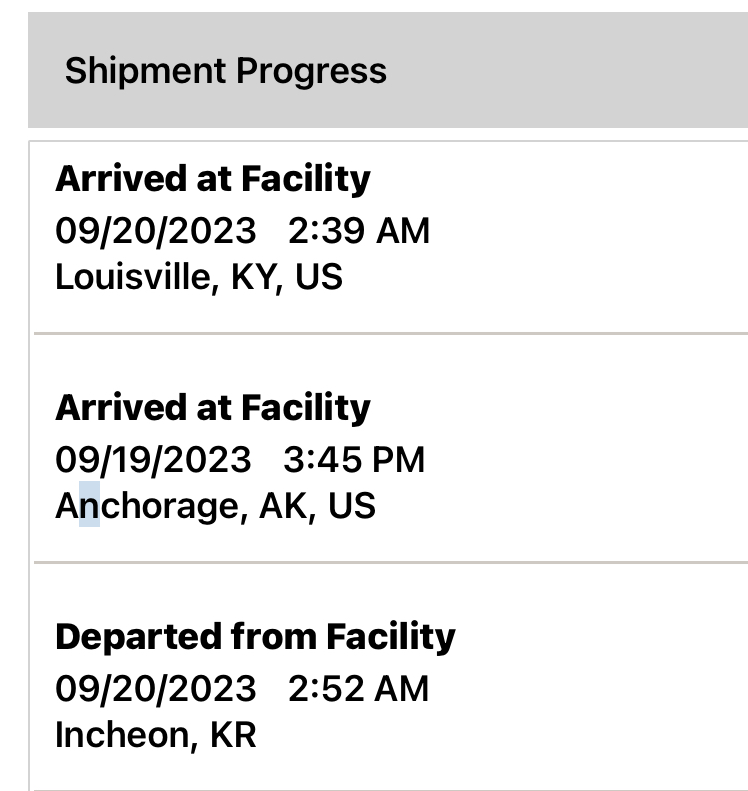 Doesn't look like they show the full UPS tracking number these days, so no details. Must be on one of the flights mentioned above (U.S. West Coast destination)? ¯\(°_o)/¯ Fun to see it in flight wherever it may be!