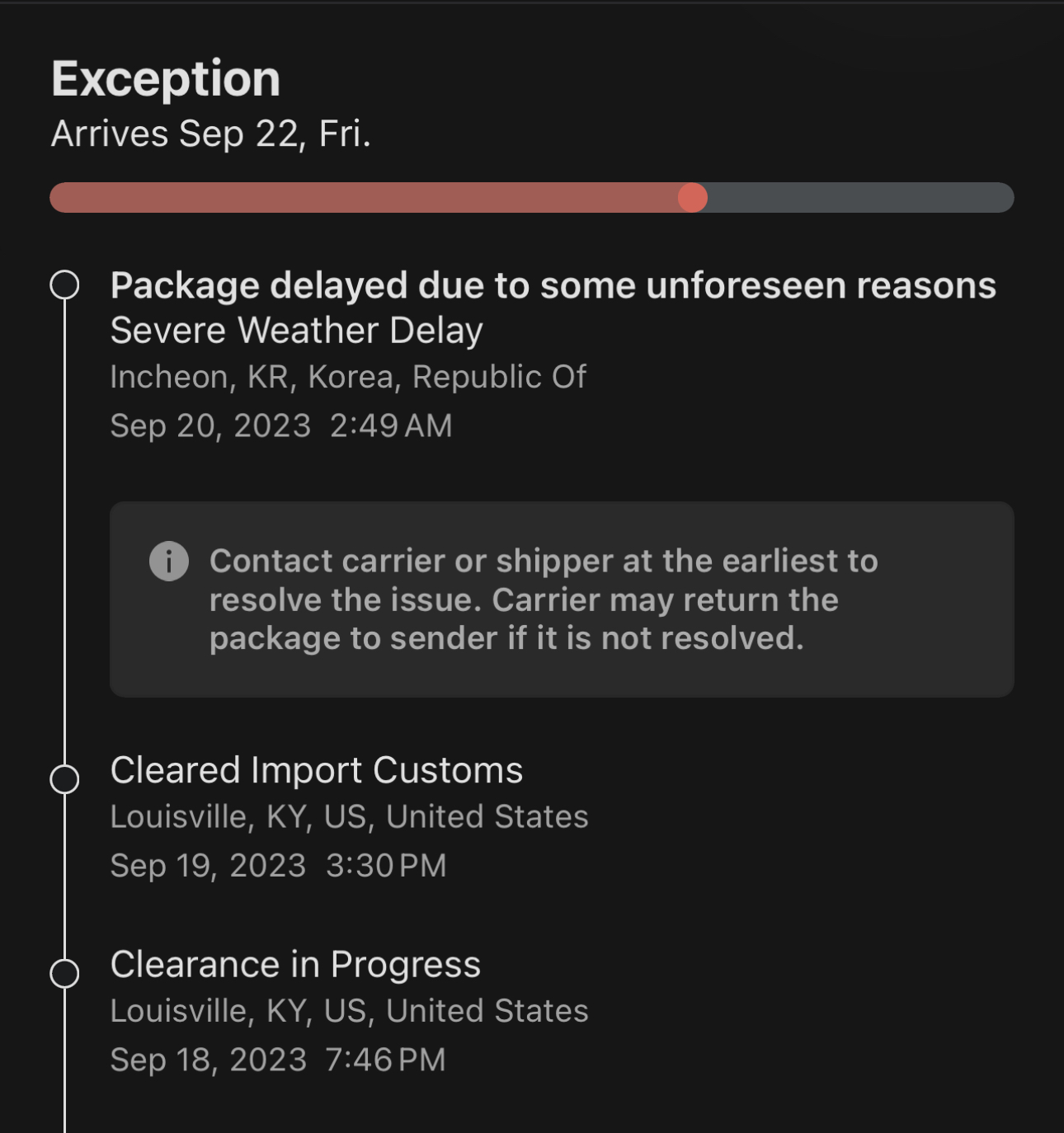 Iāve cleared customs according to AfterShip but UPS shows me still in China. AfterShip shows me in Seoul with an exception due to weatherHas anyone reported a clear customs scan? Isnāt it usually around this time it does?