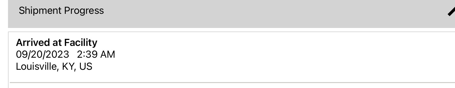 I never even got a Departed from Alaska and instead it went straight to Arrived in Louisvile. Weird.Departed Alaska 9/19 12:55Am