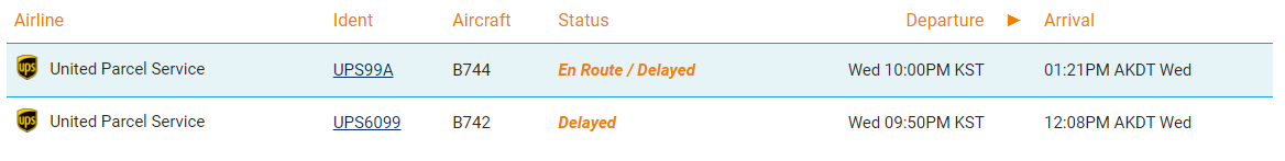 So just looking at the UPS flights out of Seoul to Anchorage. I think the UPS99A is the same regular scheduled UPS99 flight, but they had to change the callsign for some reason. I think they were going to make it UPS6099, but changed it to UPS99A.