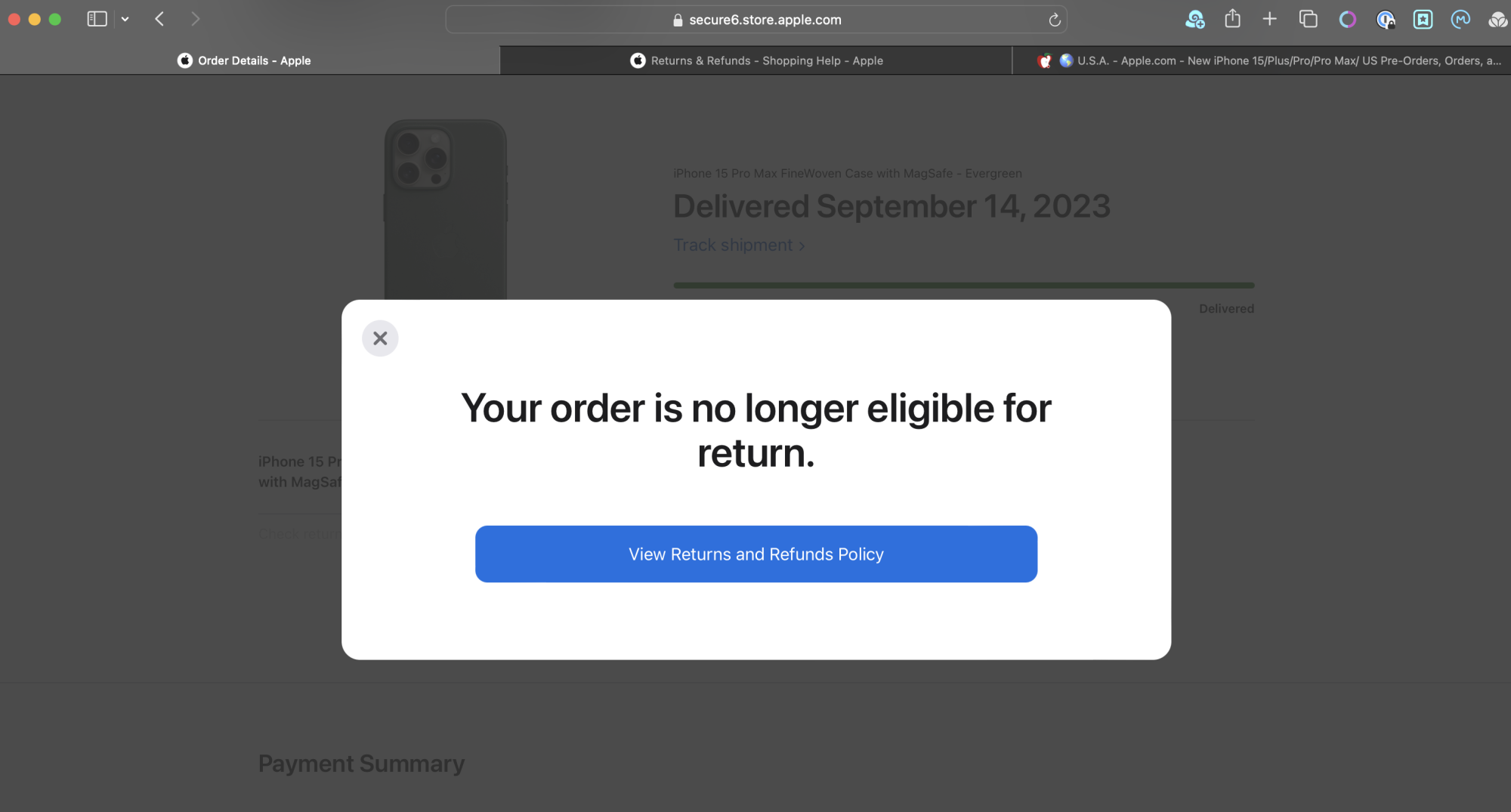 Well this is interesting. Anyone else getting this when trying to return the FineWoven case?View attachment 2271485