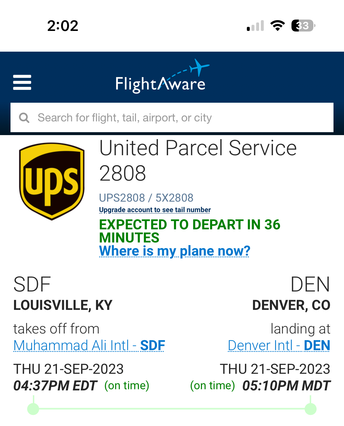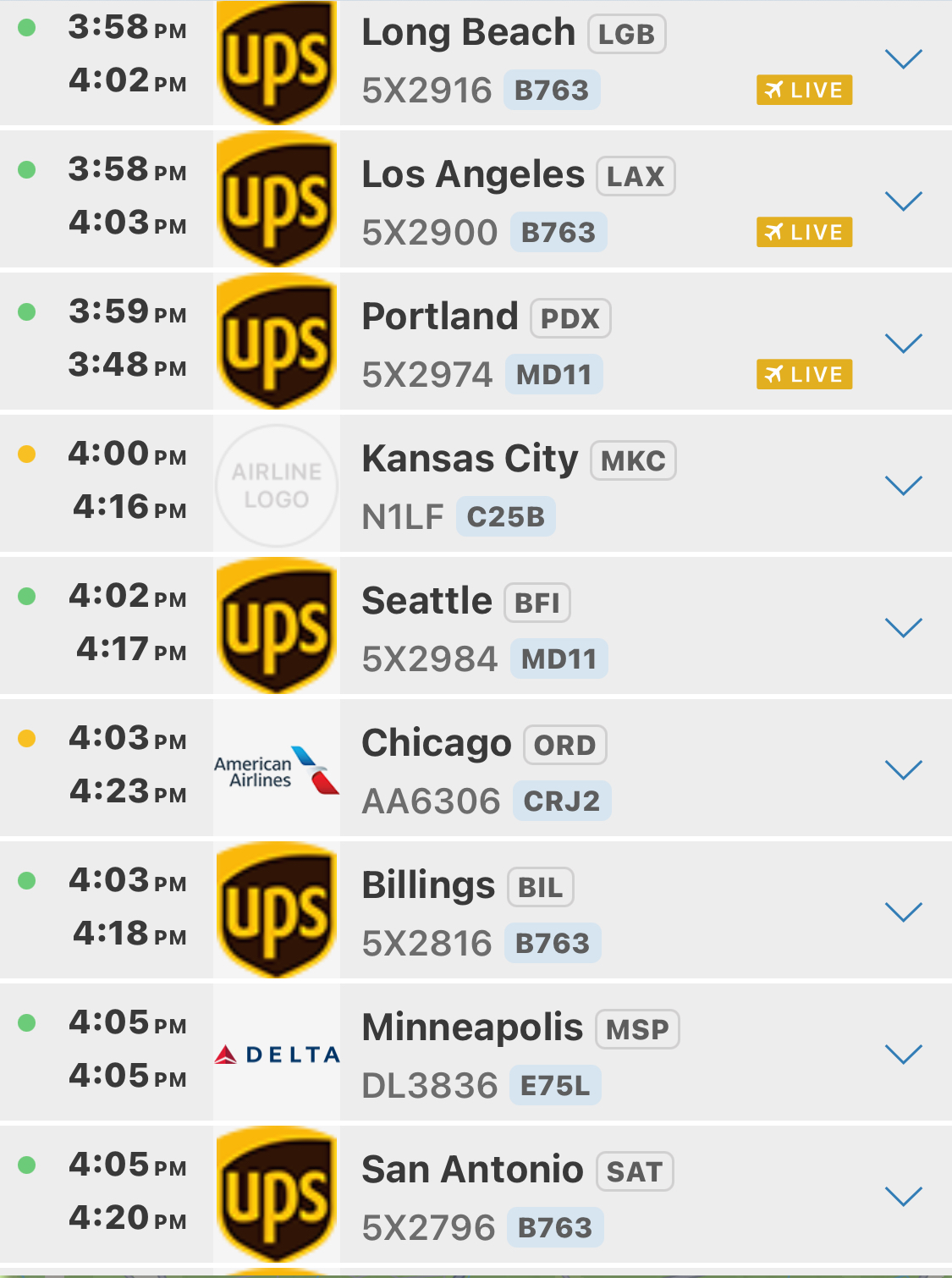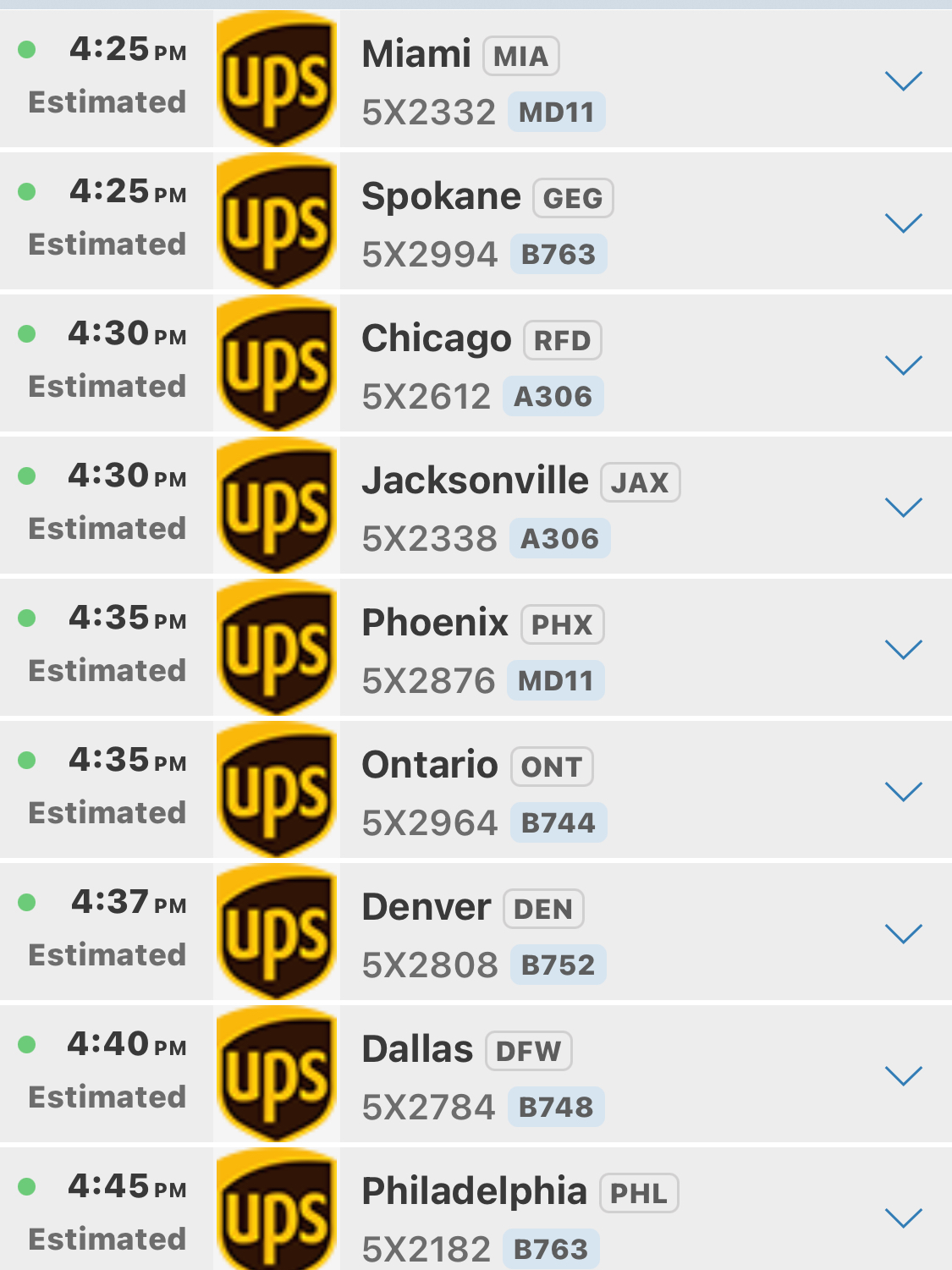 Doing the lords work.Here are the current schedule for ups flight until 5:30 pm today. I will post the schedule for later today and tomorrow morning in a few minutes: