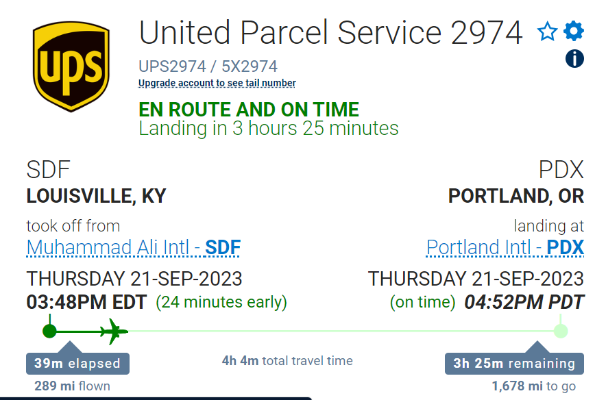 Could they have hopped on a truck? It is only a 6 or 7 hour drive from Atlanta to Louisville, right?I don’t get it. UPS says my iPhone is in the air. But the flight tracker doesn’t have any UPS flights coming to Atlanta. Could they have put it on a Delta?