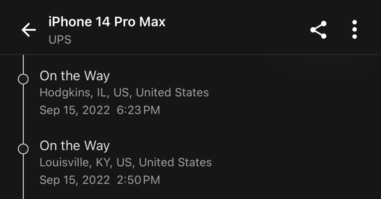 | 9/21/2023 07:06 PM | On the Way Arrived at Facility West Carrollton, OH, United States |