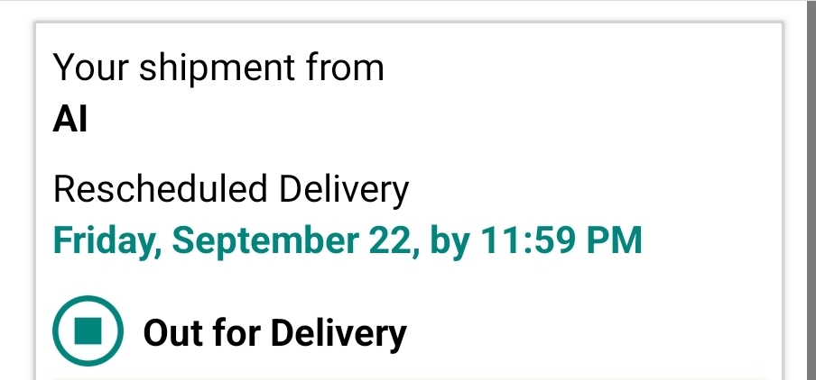 Sure taking their time!Negative. @ksujoel must be talking the UPS guy’s ear off. Truck still way out east