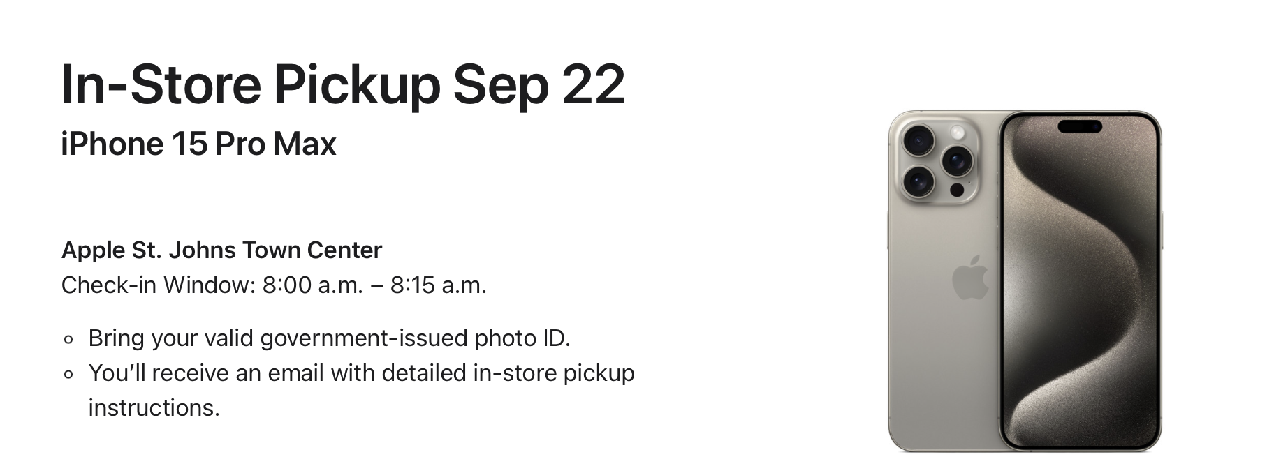timeconsumer macrumors 68020 Aug 1, 2008 2,183 2,288 Portland Sep 15, 2023 #2,078 Orders placed! Got 1 15 PM 256GB natural titanium and 1 15 PM 256GB blue titanium. And already received order confirmation numbers to my email.