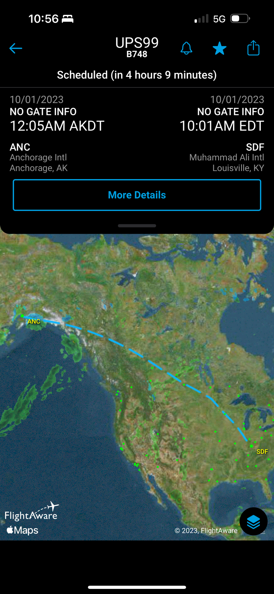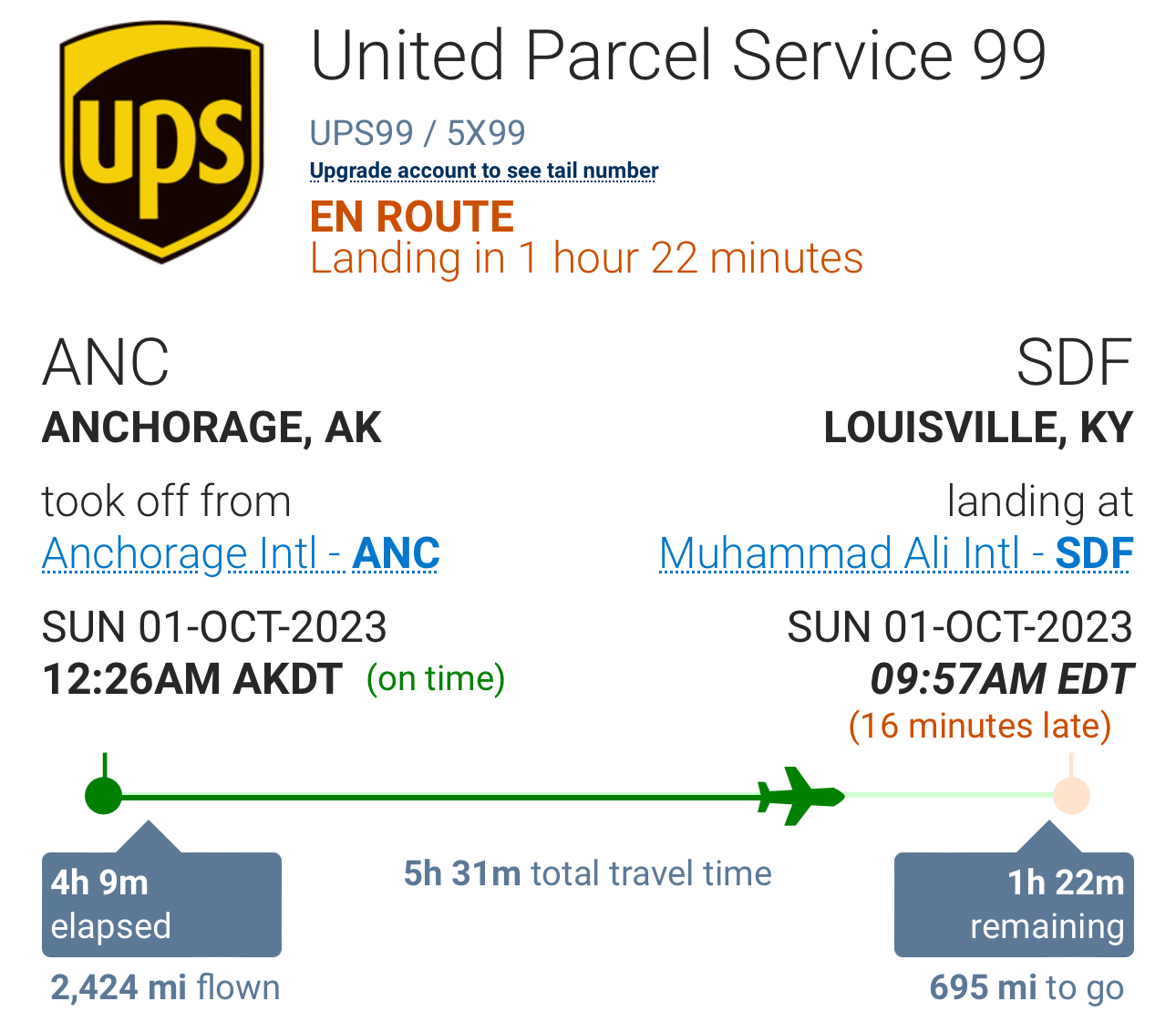 Here’s the schedule for UPS99 from ANC to SDF after its layover in ANC..