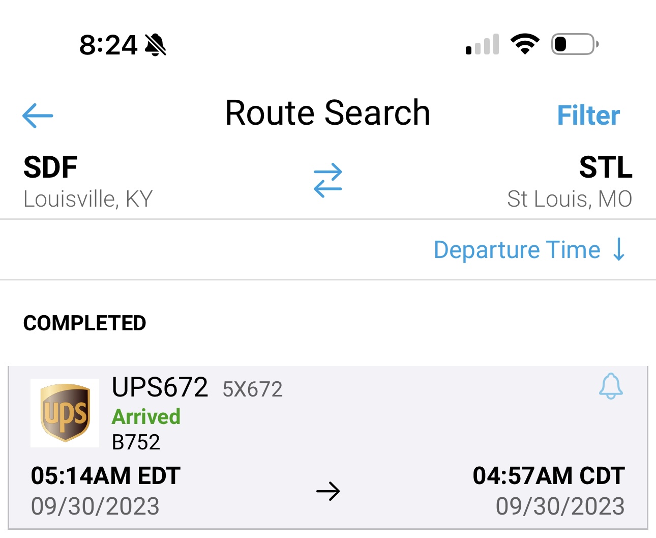 Hmmm. I don’t know if that will be the one or not. Looks like it doesn’t fly every day and when it does it’s well before the arrival time of our phones in Louisville.