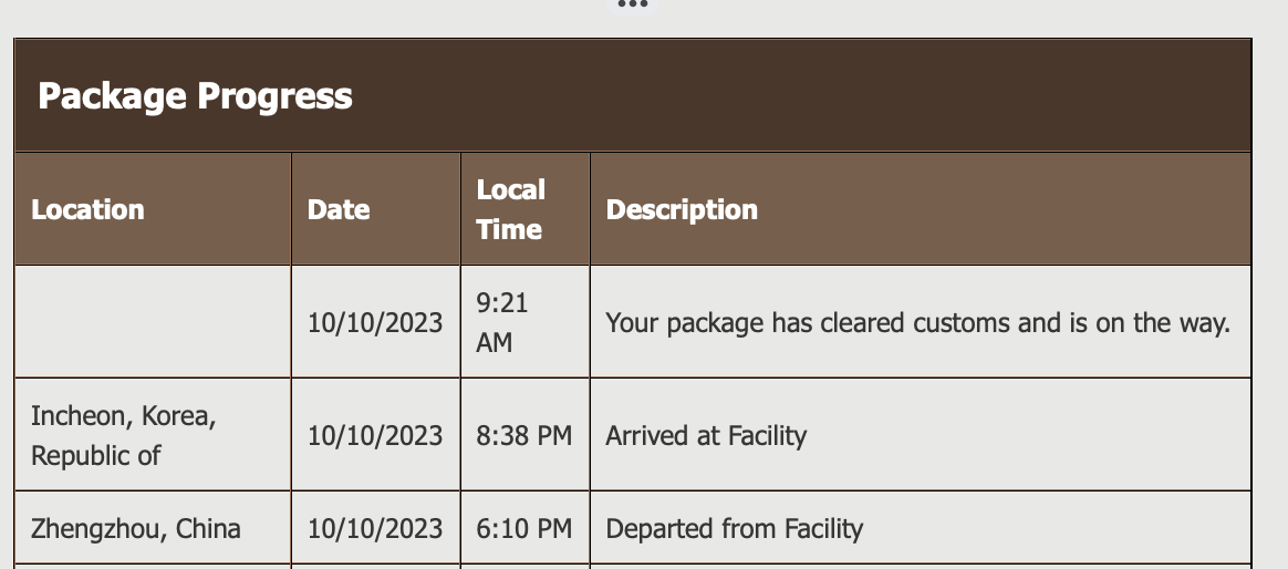 Not me. Just “Your package is in transit. We’re updating plans to schedule your delivery.” My scheduled delivery date is Oct. 10 by 7 PM, but I am pretty sure that didn’t happen.