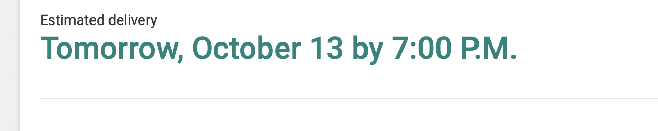 Delivery pushed back to tomorrow... I'd be lying if I said I wasn't a little ticked at this update... why even provide a delivery date WITH a timeframe at that.