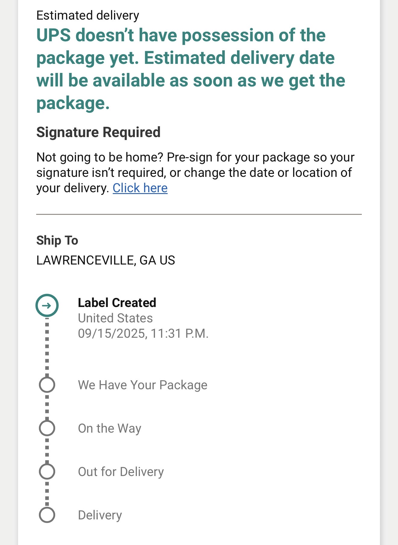Also.Package has arrived in lathrop. Should be heading out soon to my location for delivery tomorrow.