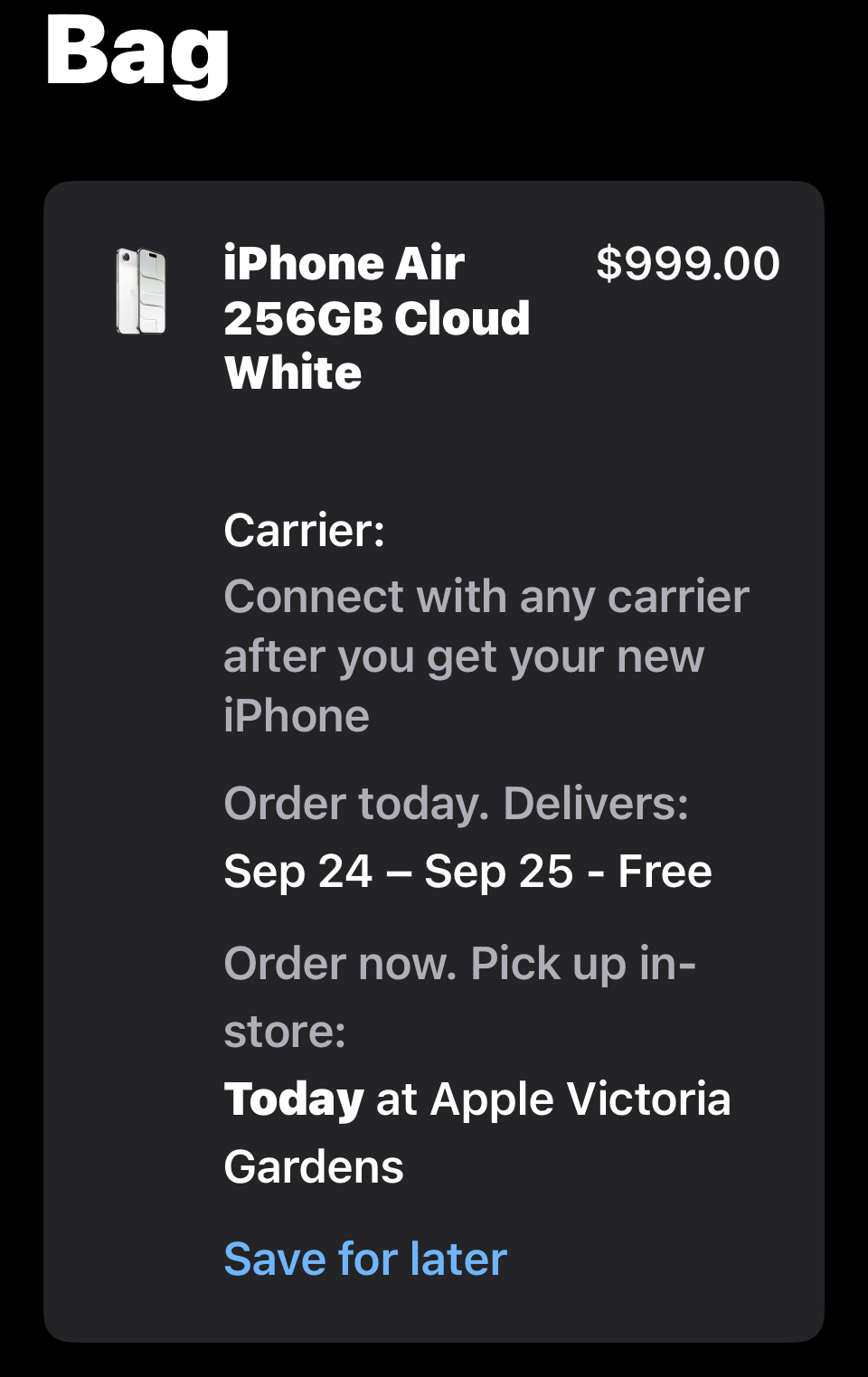 Good news, both my AirPods Pro 3 and my iPhone are at my local hub waiting to be loaded on a truck for delivery today.Wondering if anyone else is experiencing the same. This is odd. Ordered A silver 17 PM 256 GB with confirmation email at 8:03 am ET. Delivery date was 9/25 as a lot of others encountered.