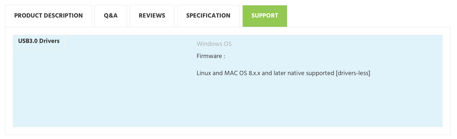 But when I click on support, they only mention USB3.0...