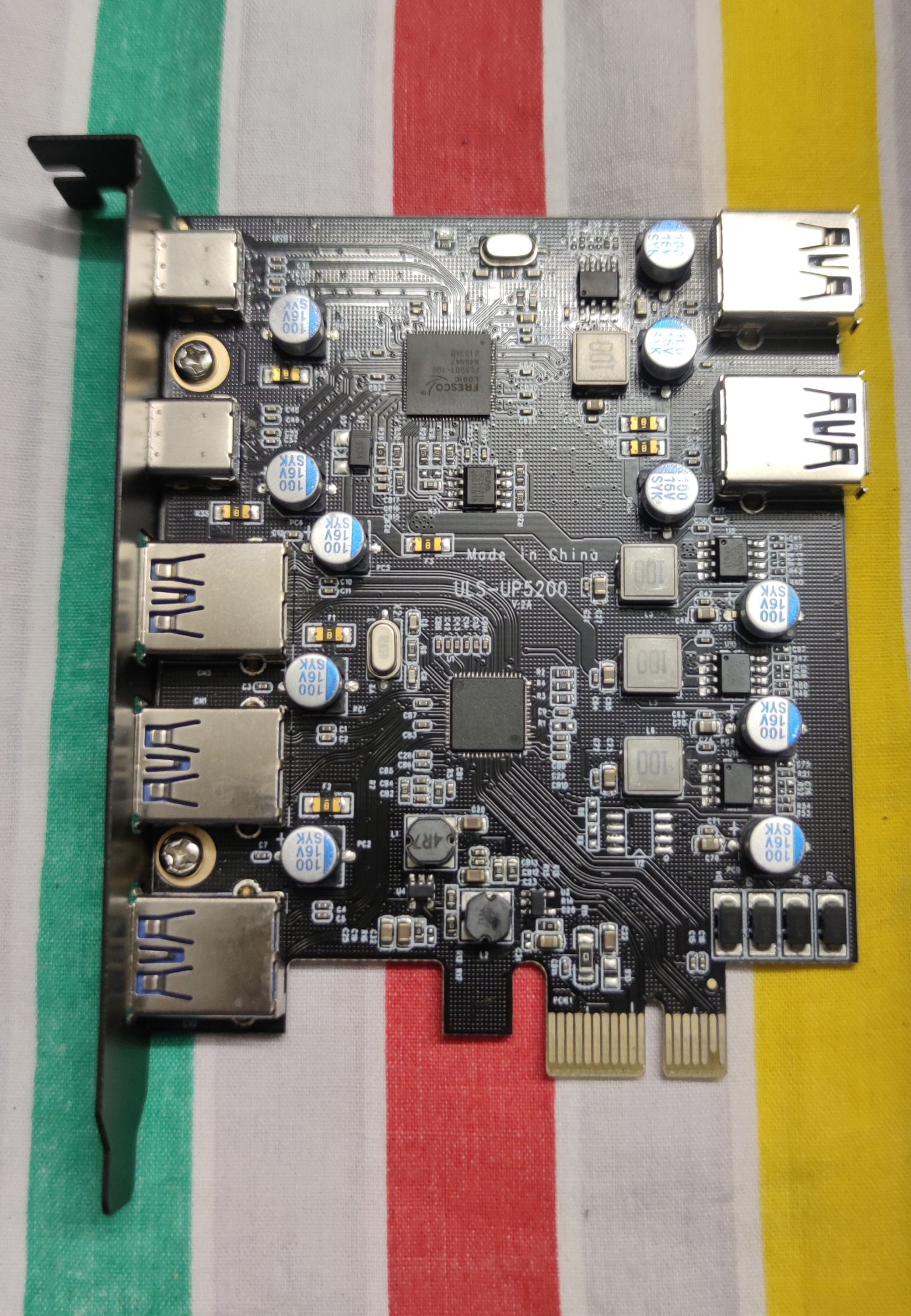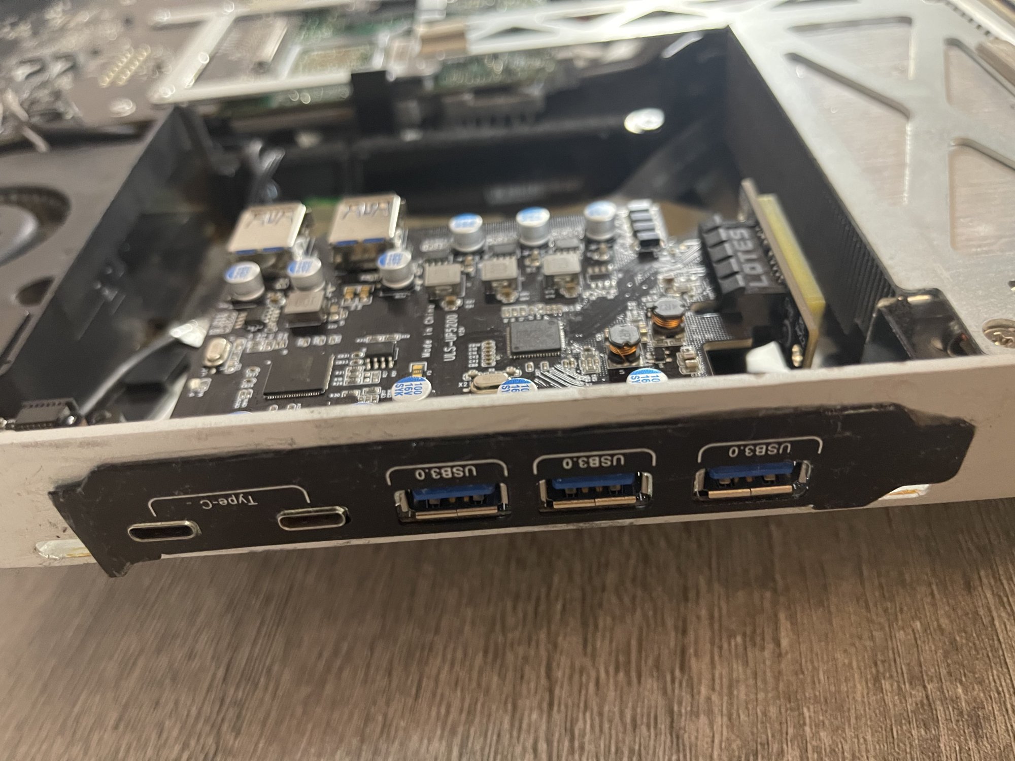 New miniPCIe—USB 3 adapter, new PCIe—PCIe 4x riser board, new PCIe x1—miniPCIe adapter, new wifi card holder to motherboard cable, new USB 3 cables. I didn’t replace the PCIe extension cables, but I’ve switched the ports on them, and still got the same results. The other thing I didn’t replace was the USB 3 card in itself. I held off on that one, due to the LED lighting up, and that it was the most expensive out of the parts.