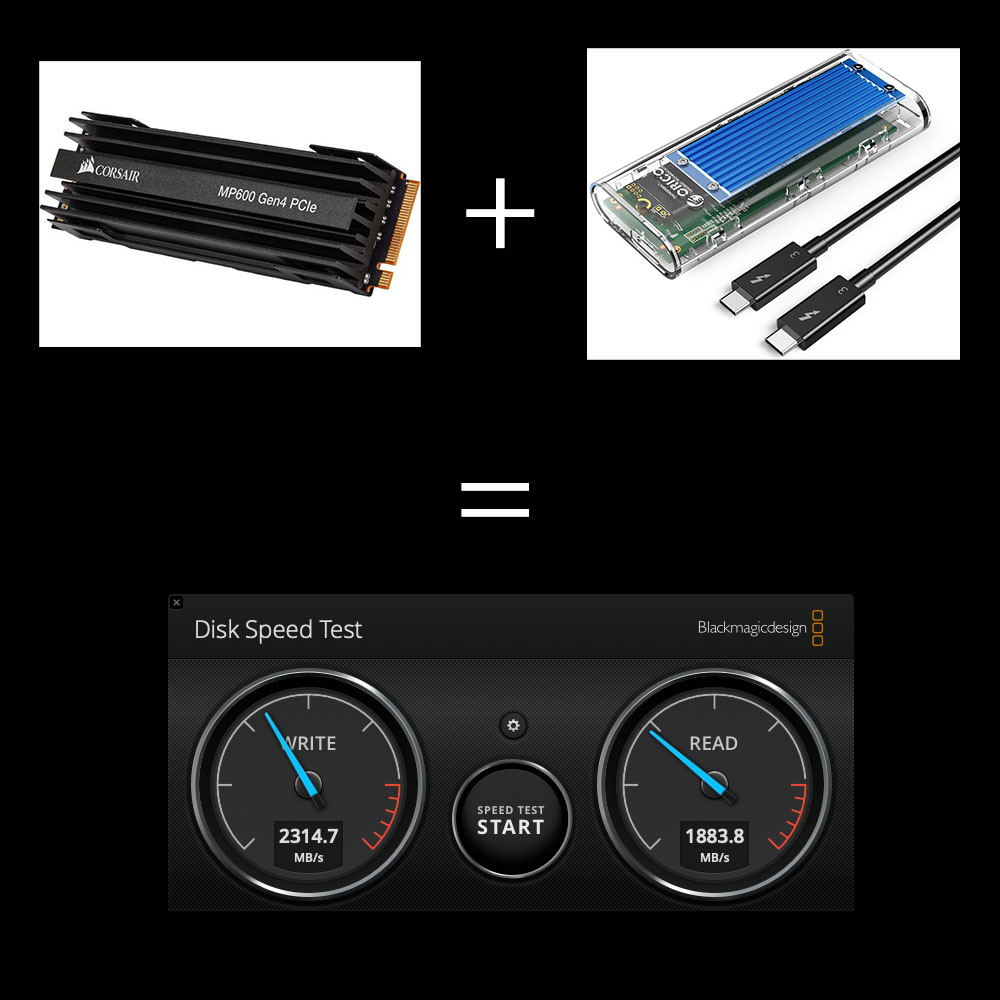 When I plug it directly to one of my 16" MacBook Pro's ports via USB-C-to-USB-C cable, it connects at 10 Gb/s