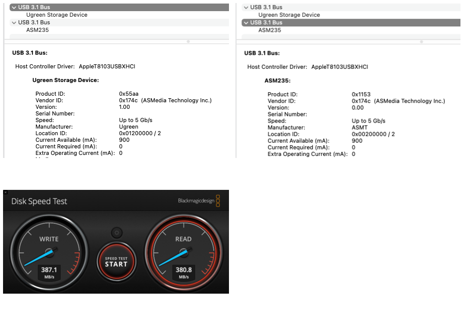 But if I connect directly to the other Thunderbolt 3/USB-C port, it only connects at 5 Gb/s, yes, using the same USB-C-to-USB-C cable as both previous connections: