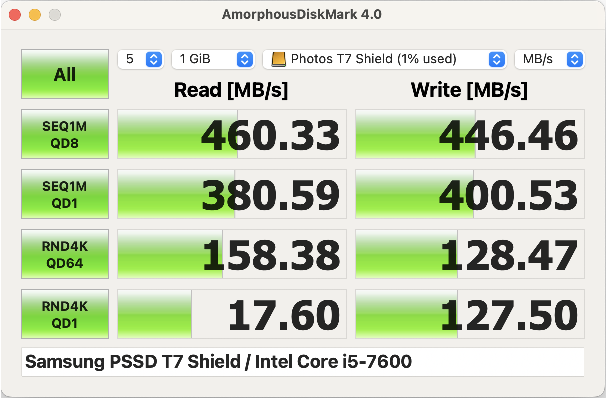 Need a test from an Intel Mac to see the max of the T7 to show how much is lost with the M1.