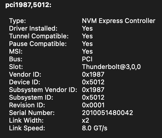 One thing interesting in this screenshot is the super low PCIe bus number 3 for the slot. The M1 Macs don't use many PCIe devices. Most of the devices are integrated in the M1.