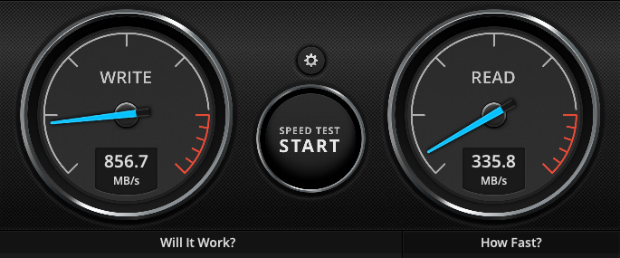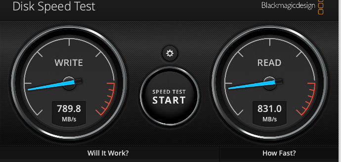 Black magic disk speed test reports ~103 write and ~760 read
