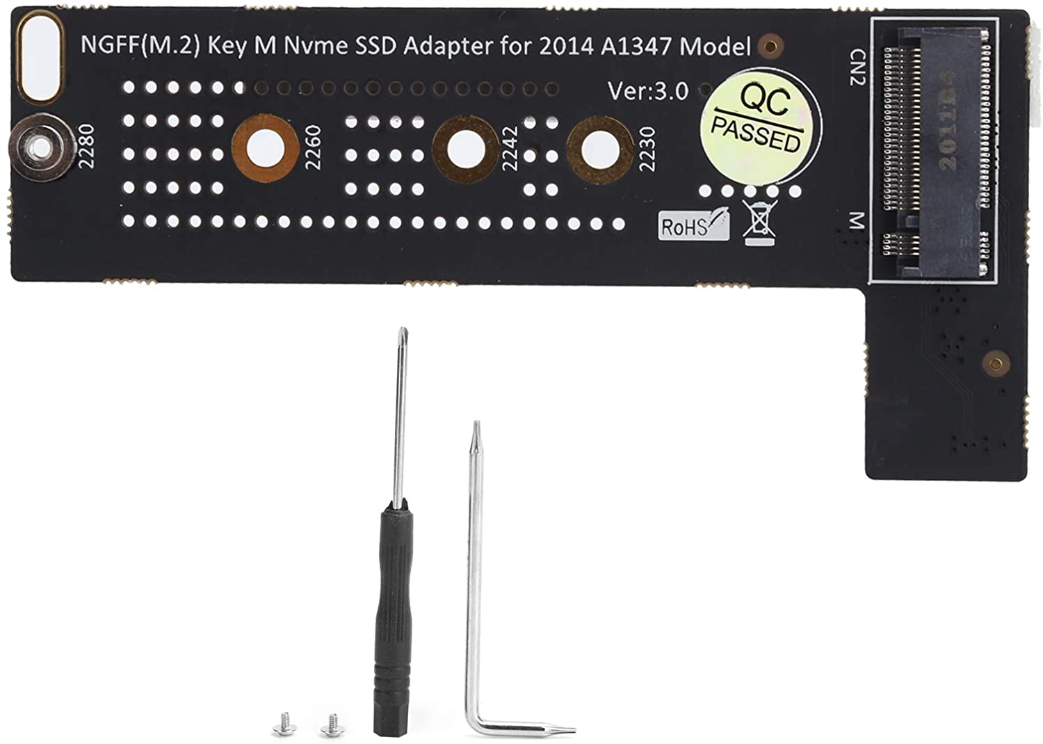 I did try screwing down the adapter to the existing SSD screw mount, and while the extra hole on the adapter board does line up, screwing it down bends the board. It needs a spacer (and longer screw) if you want to keep it straight. So, like the others here, I just rely on the adhesive to keep the drive adapter in place. Anyone know where we can get a spacer for this? A small plastic spacer would be ideal. I don’t know the length required though.