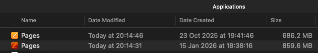 And just now in Pages a box flashed up saying there was an update available in the App Store.