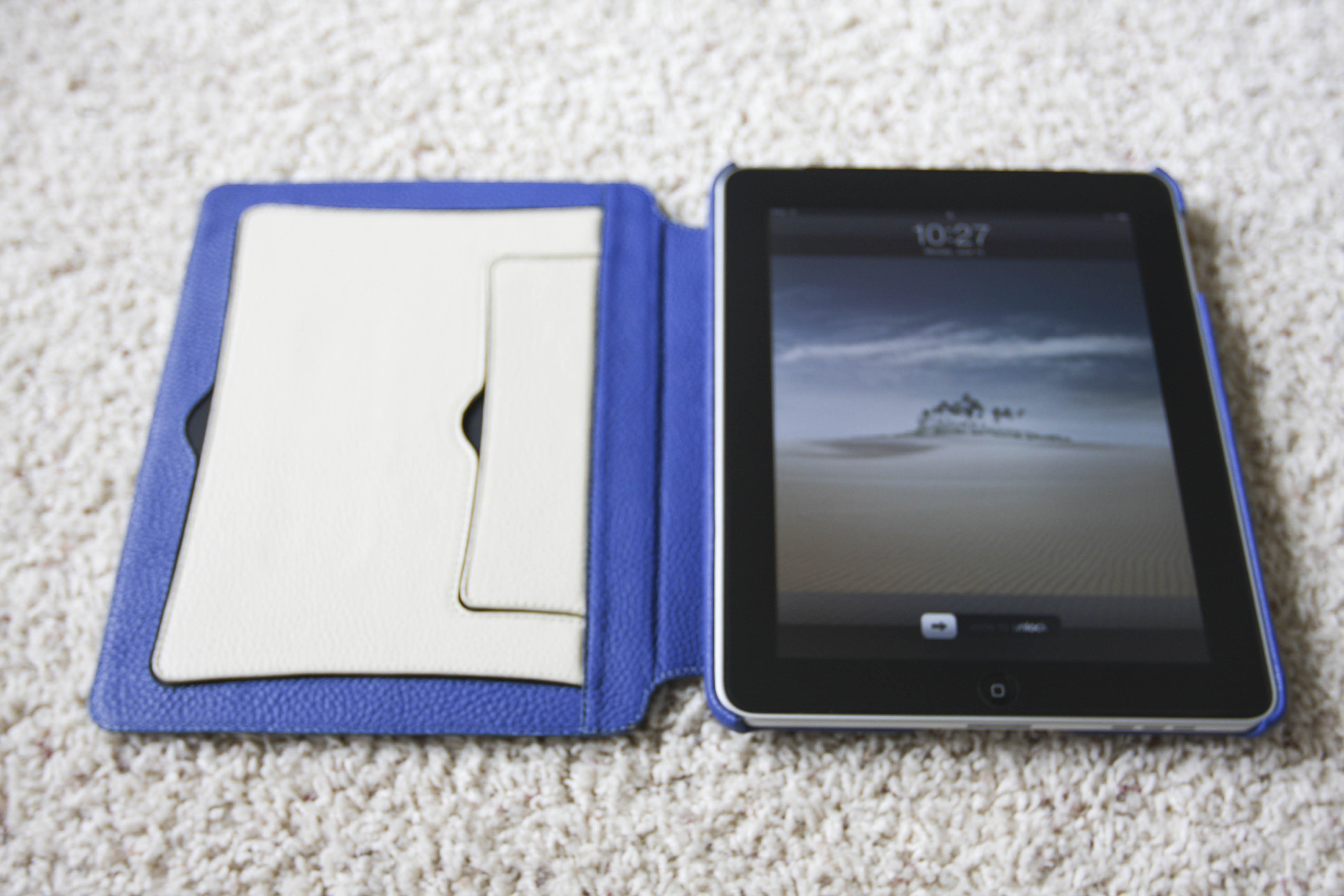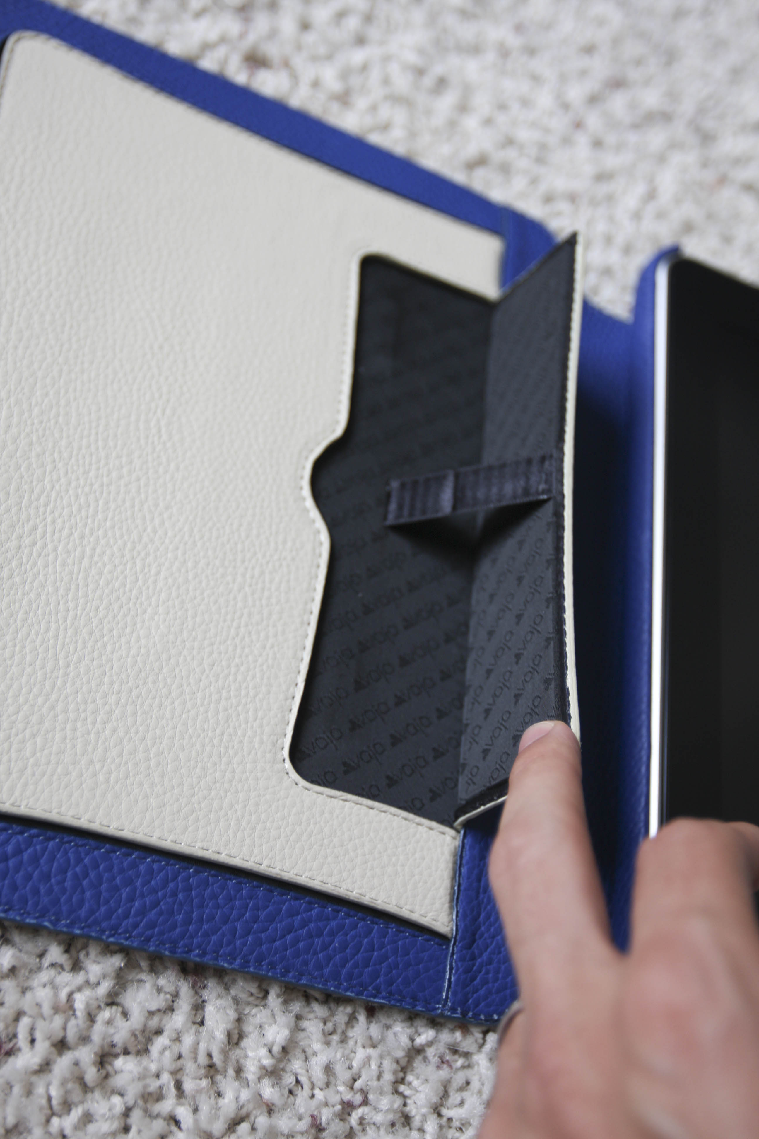 Looking at the pictures on the Vaja site, I assume there is something inside the flaps to make them rigid. But I can see no mechanism to prevent the flaps from sliding completely backwards or forwards and the iPad falling flat. I'd really like to hear from someone who has actually used this Agenda first-hand.