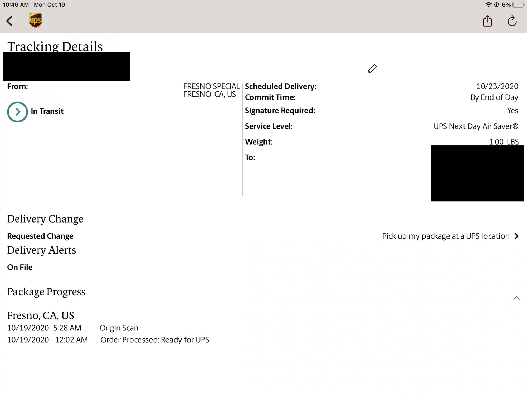 Just checked: Device shipped from Fresno, CA arriving Friday, 10/23 by 9:00 PM