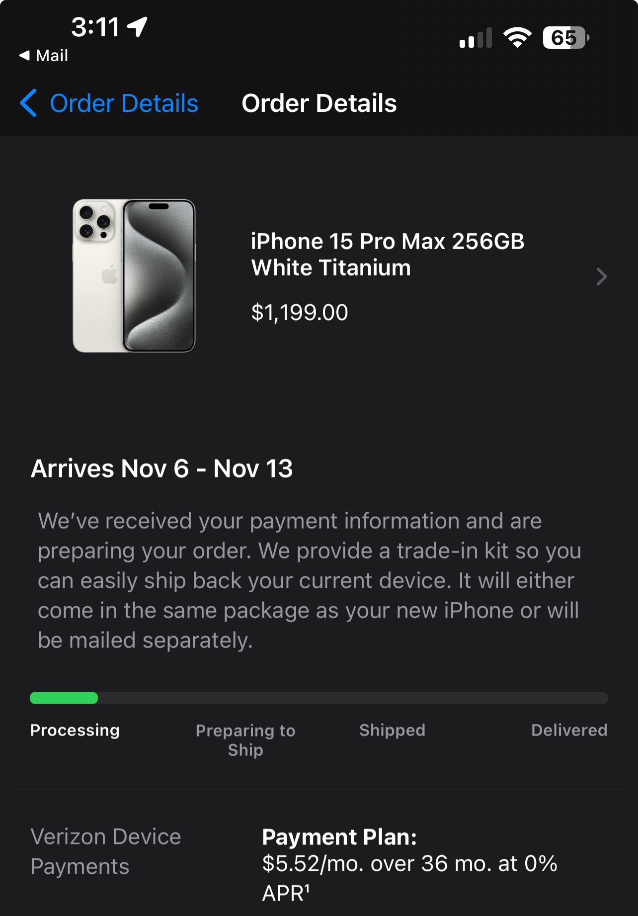 Anyone remember logging into the backend of Verizon’s system to see status changes? lol I remember doing this for my 6 plus that was instantly delayed like four weeks because of high demand. Good times. Much easier now.