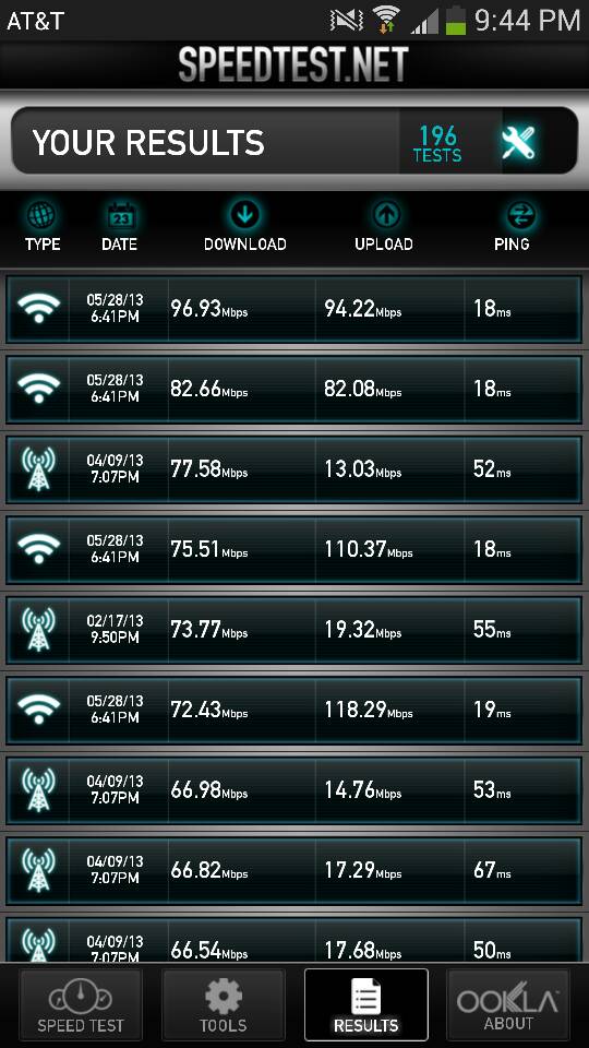 AT&T's HSPA network will usually average faster. AT&T and Sprint's LTE network speeds here utterly shame Verizon's.