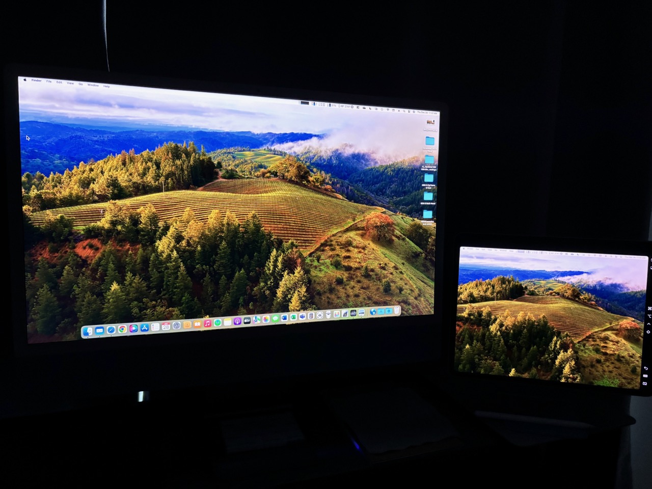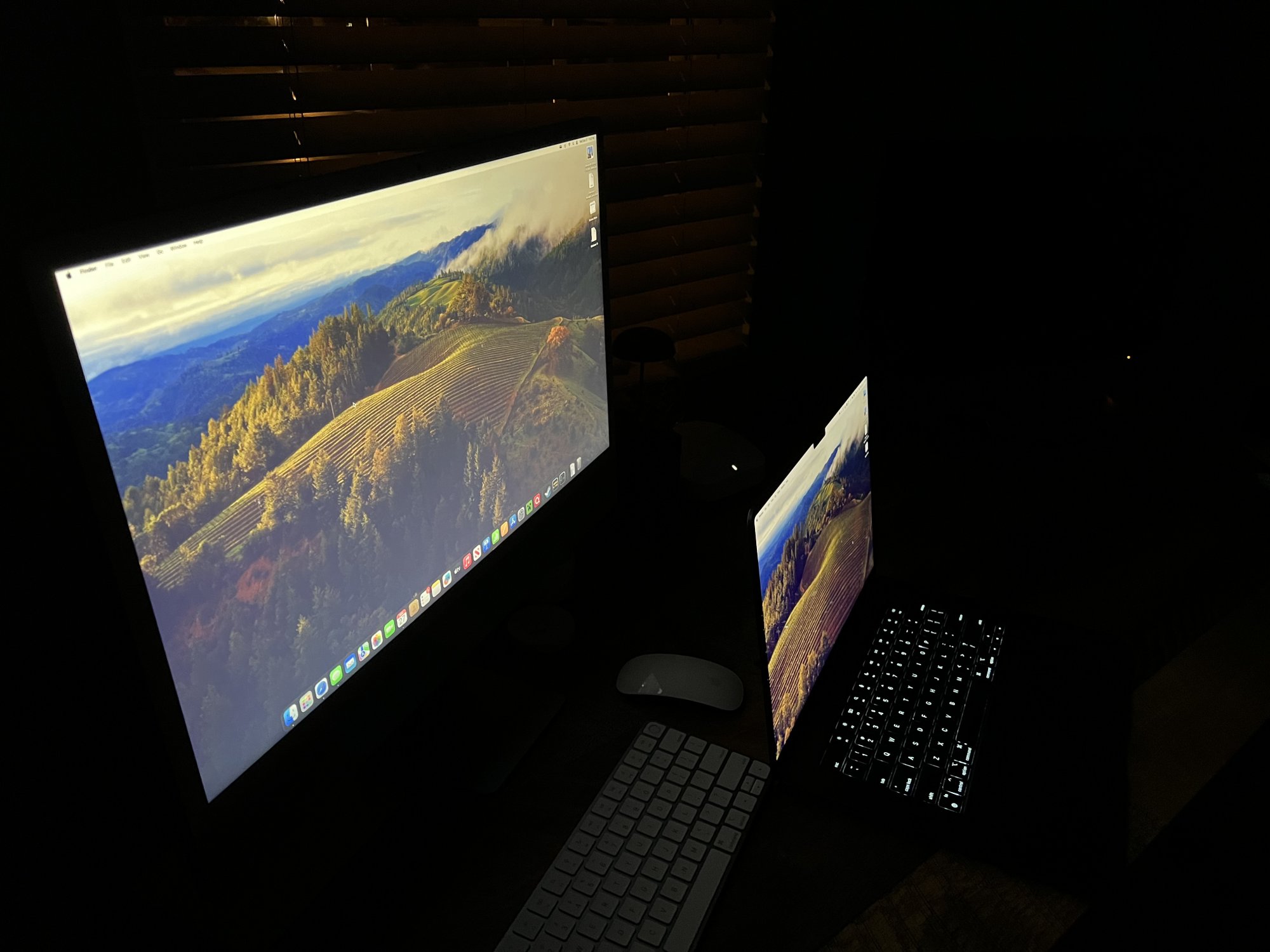 I didn't notice this that much at first but now that I've spent over a month with my new iMac I'm getting to be pretty disappointed with the screen. Next to my M2 MBA 15" I think this panel is just awful in comparison. You can see in the off center photo it's showing lots of hazy white (this is 50% brightness on both displays). This reminds me of those horrible TN panels I used to get.
