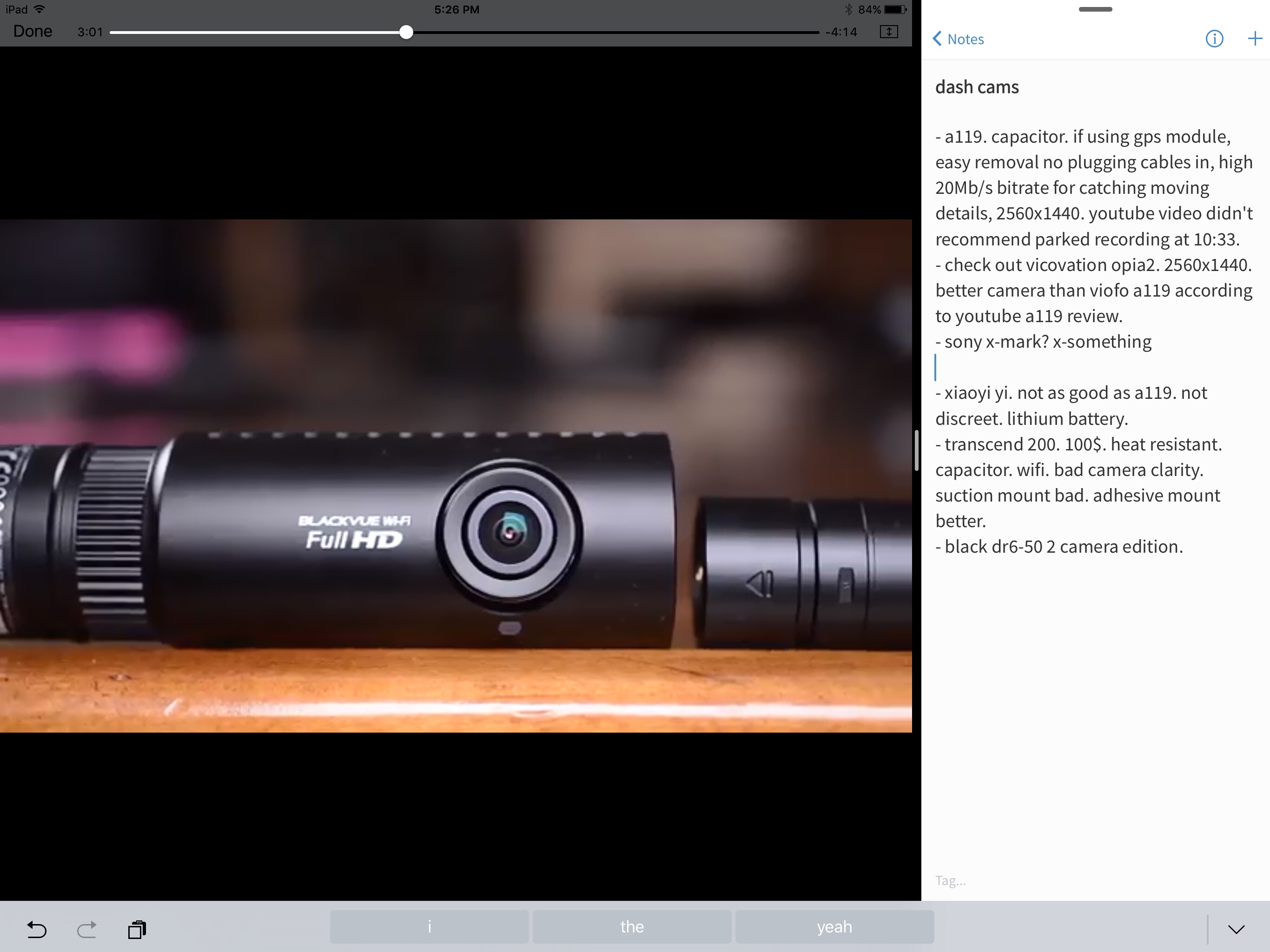 I have a Smart Keyboard attached, trying to watch a video 70% full screen and take notes on the remaining 30% screen. But when I type, the bar at the bottom of the screen covers the video controls (play, pause, next, back, volume)-see screenshot. This is very bothersome because I often need to pause or rewind to catch up in my notes. Anyone know if this is a bug or oversight or feature? Or better yet how to correct this? I know I could play the video smaller as a work around, but I do want full screen. Thanks.