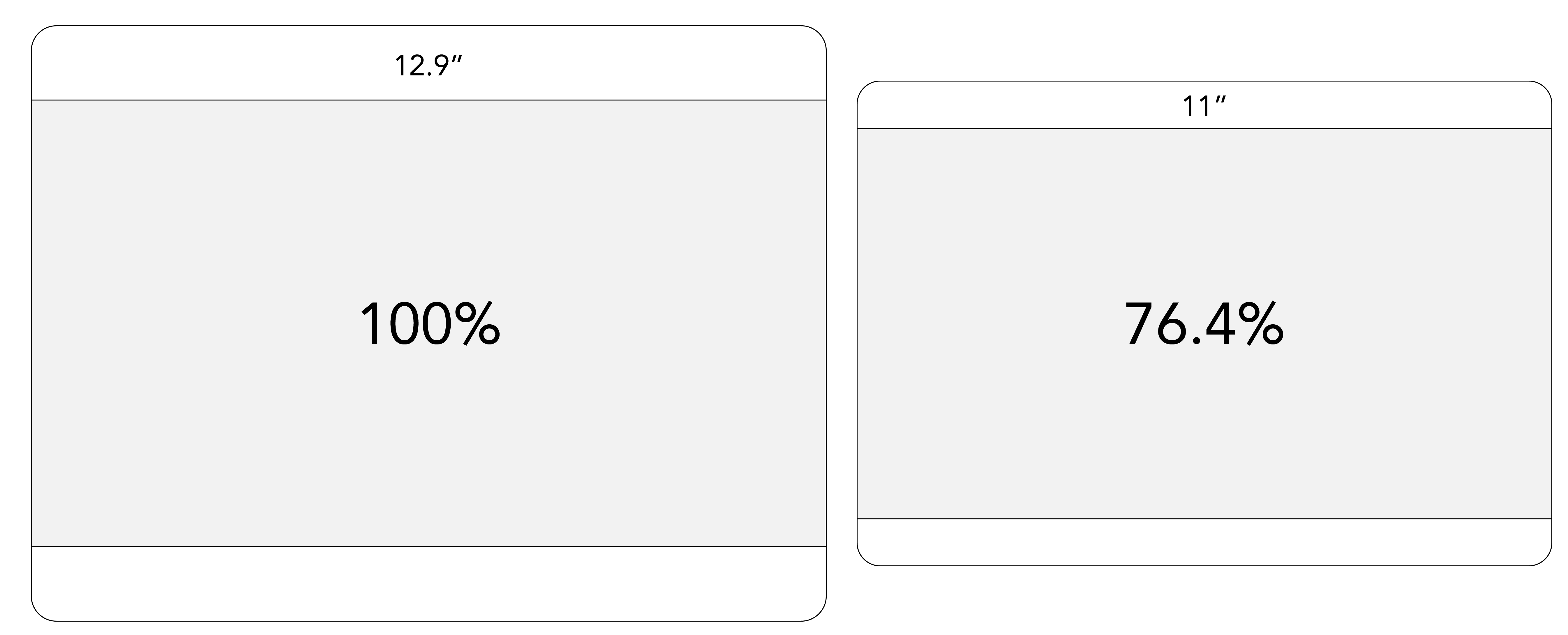 I made some squares in Illustrator based on the screen resolutions of the 12.9" and 11", placed 16:9 rectangles in them, calculated the relative size difference of those 16:9 rectangles.