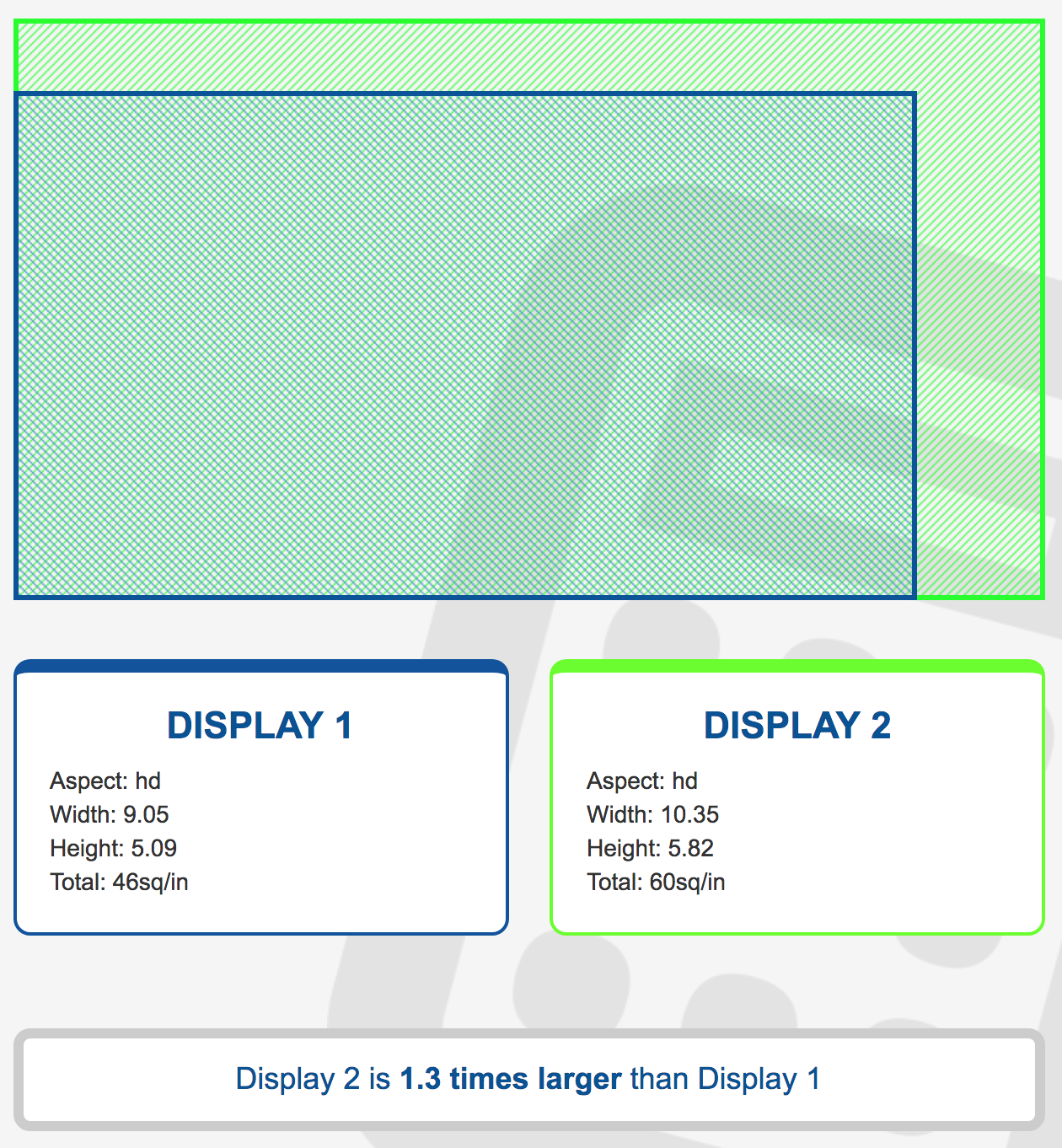 and I was able to enter in the screen sizes to get this comparison of what a 16:9 video would look like on each screen: