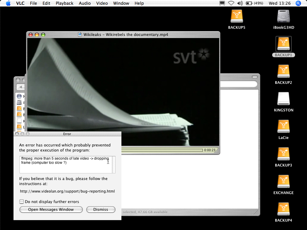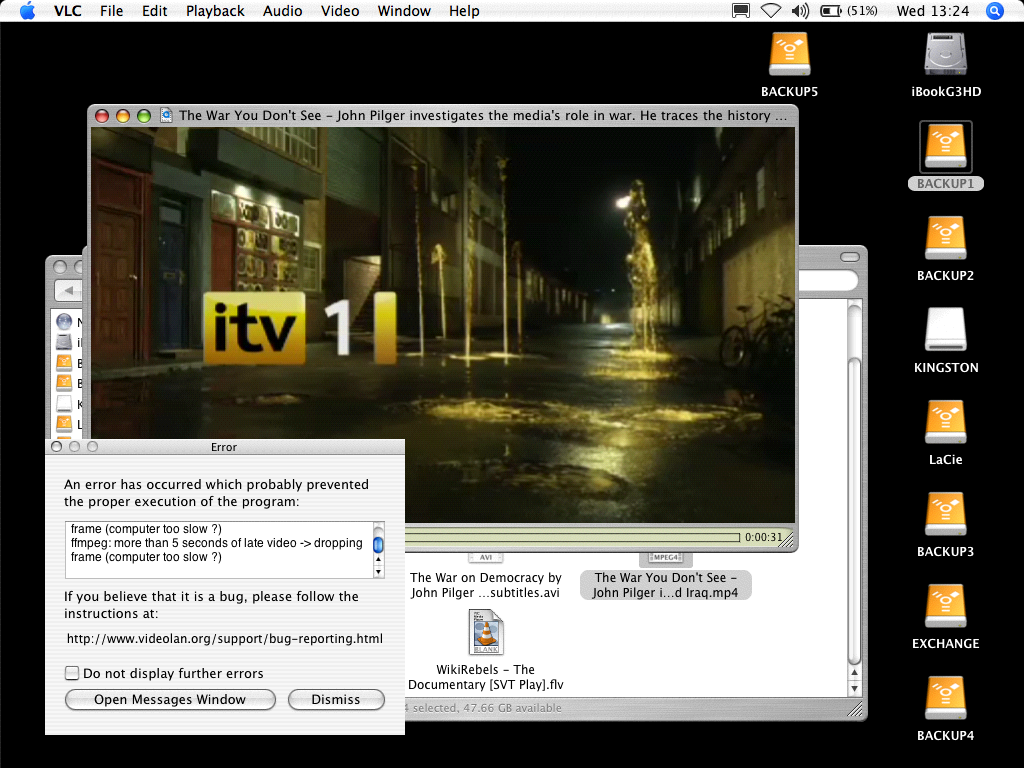 The video in question is originally an MKV h264 but its in SD (Star Trek DS9 if anyones curious). I’ve tried every player known to work in Tiger that I can think of. VLC is utterly useless under Tiger, it even crashes on Tiger running on a G5.