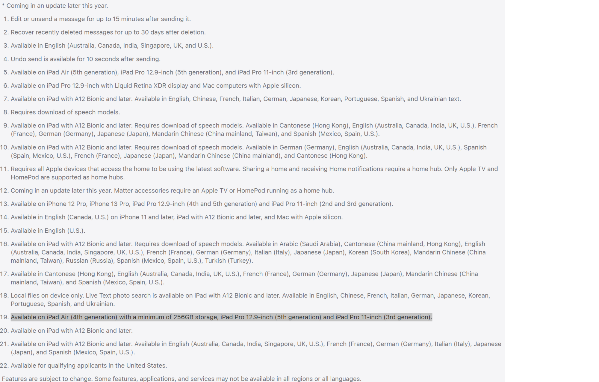 Not sure about that, also why have they mentioned the two iPad pros in the 19th footnote & not 2022 Air? Do they also need 256GB minimum storage for virtual memory to be enabled?