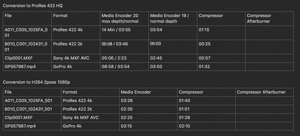 I‘m definitely gonna take some Sony MXF Footage and run it through compressor to Prores and either they will let me remove the Afterburner and repeat the test, or I‘m gonna run the same test on my machine at home to compare results.