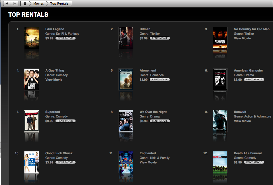 Gray-Wolf macrumors 68030 Apr 19, 2008 2,603 2 Pandora, Home Tree Apr 21, 2008 #5 I take it back, partially. You can have a choice on some listed as view. But, I have also seen movie listings that were posted, but unavailable.