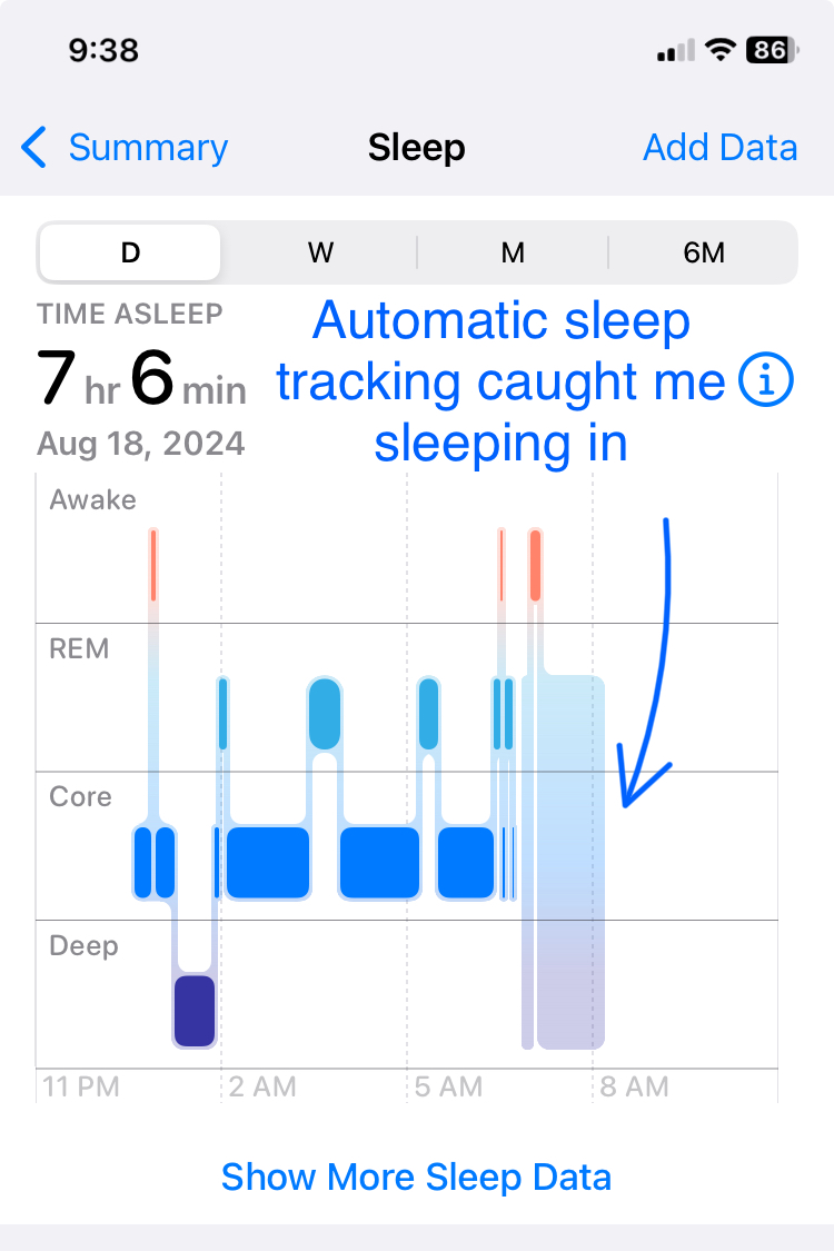 Y’all I witnessed the hidden automatic sleep tracking feature in watchOS 11. I accidentally slept in and my Apple Watch tracked these gradient colors which means that it automatically tracked additional hours of sleep.