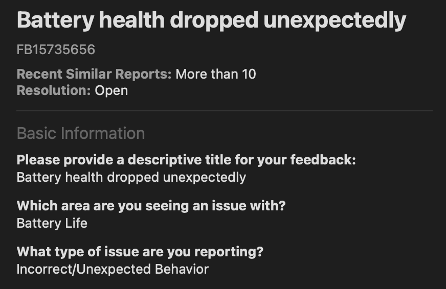 Wow how often do you charge it and how long did you have the Apple Watch Series 6? Did you also submit feedback as well?The battery health of my Series 6 is down to 78%. I am pretty sure it was around 85% before.