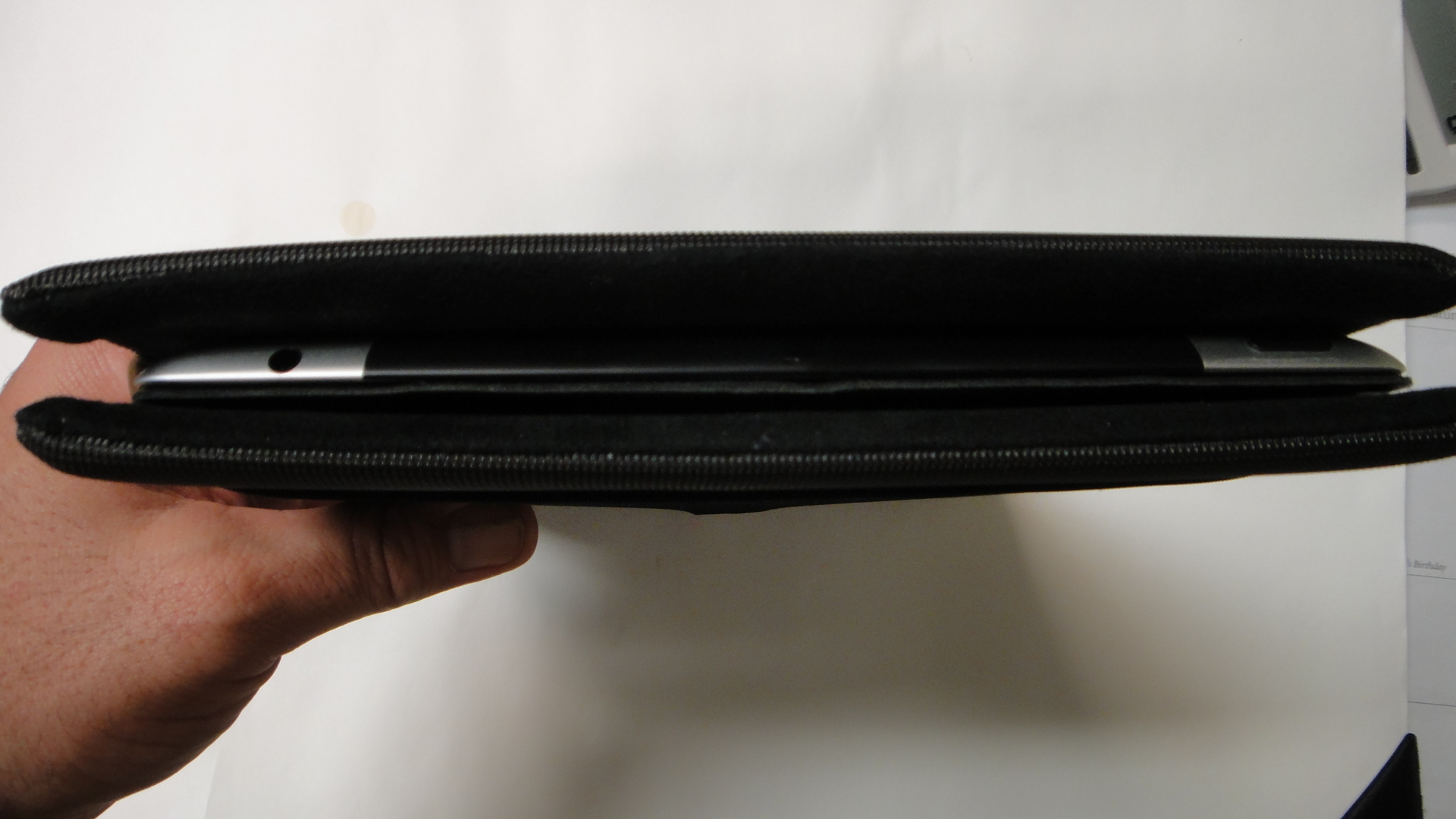 The nice thing about the Smartcover VS the old iPad Apple case is you could now look at the sleekness and form of such an attractive device. The not so nice thing is it leaves it vulnerable to dings, marks, scratches, and dents. This left me looking for something close to what I had with my old Sony Reader, a simple pouch that would offer protection, but not bulk it up.