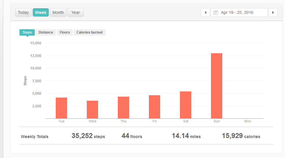 Just noticed I hit over 100K on my weekly Steps Total? Not really that high a number since it is only a little over 14,000 a day and many shoot for a minimum of 10K a day. Also a little 'unfair' since I run a good percentage (about 25 miles a week) of the steps. And in running you only get about ½ as many steps per distance as walking.