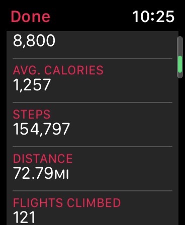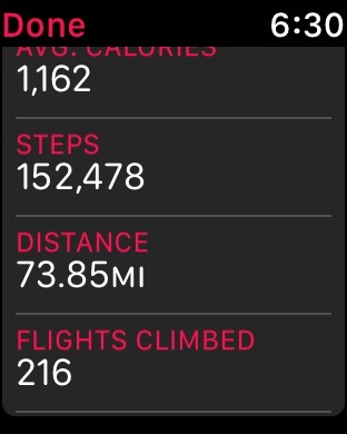 Mine NEVER shows up. All you do is on Monday open the Activity app and force press the target and you will get the summery. You can also do this any other day to see your up to that date total.