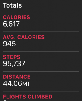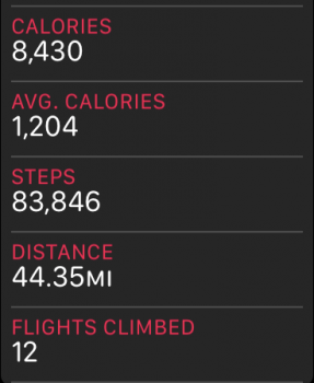 I pushed a little harder this week. My AW didn’t recommend that I change my calorie goal this week, but I’m sure it’ll suggest another bump up soon. I’m going to have to start doing some additional exercise besides my normal daily routine + 15-45 minute walk!